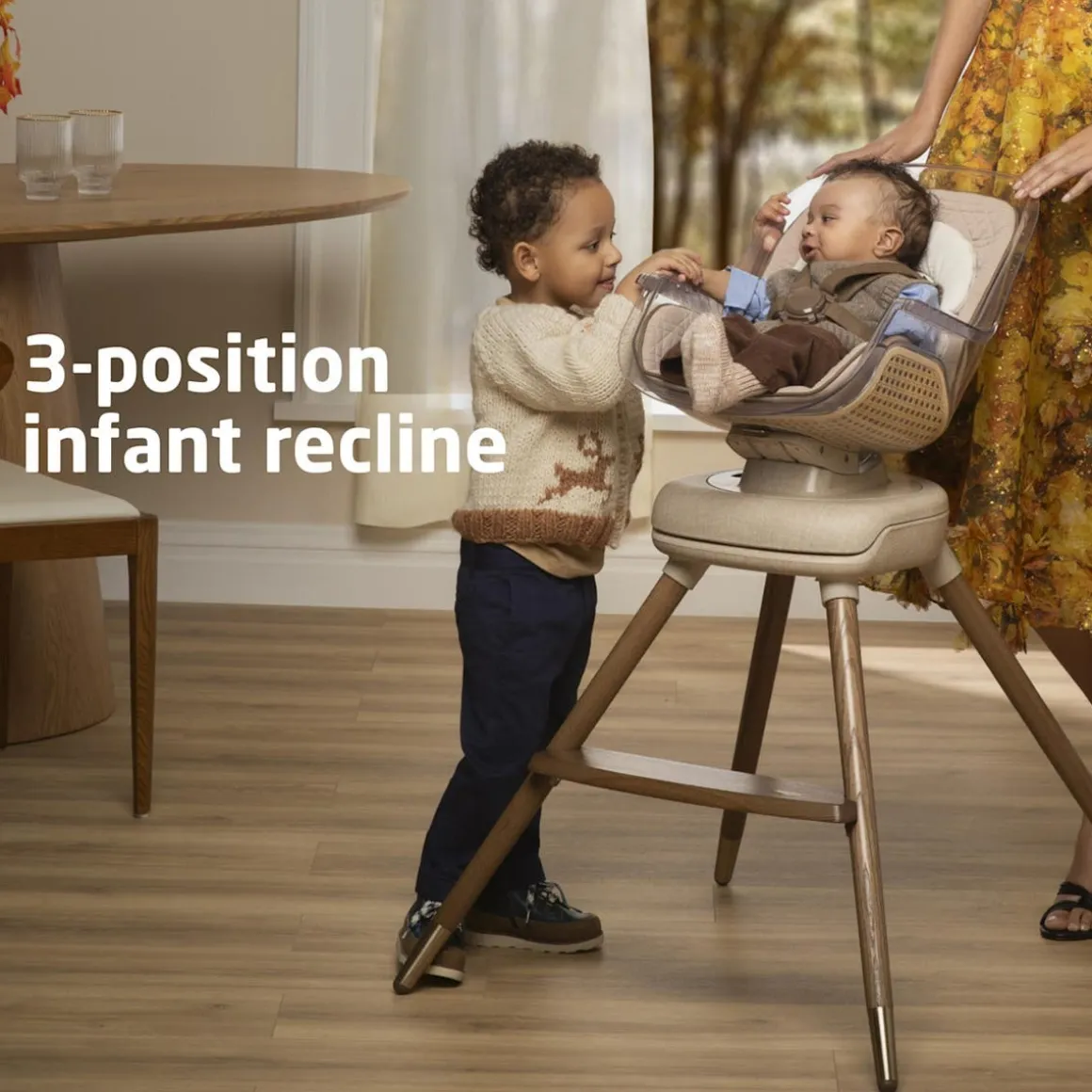 The Maxi-Cosi Kindred Kiskadee 360° Rotating High Chair reflects a timeless design crafted with premium materials to complement your home’s décor. Made with soft, luxe fabrics and tapered Ash wood legs with specially finished metals, Kiskadee’s inspired design captures classic elements—paying special attention to providing comfort for your little one. In high chair mode, the seat can rotate 360° with the touch of a button, so it’s easier than ever to feed and interact with your little one.