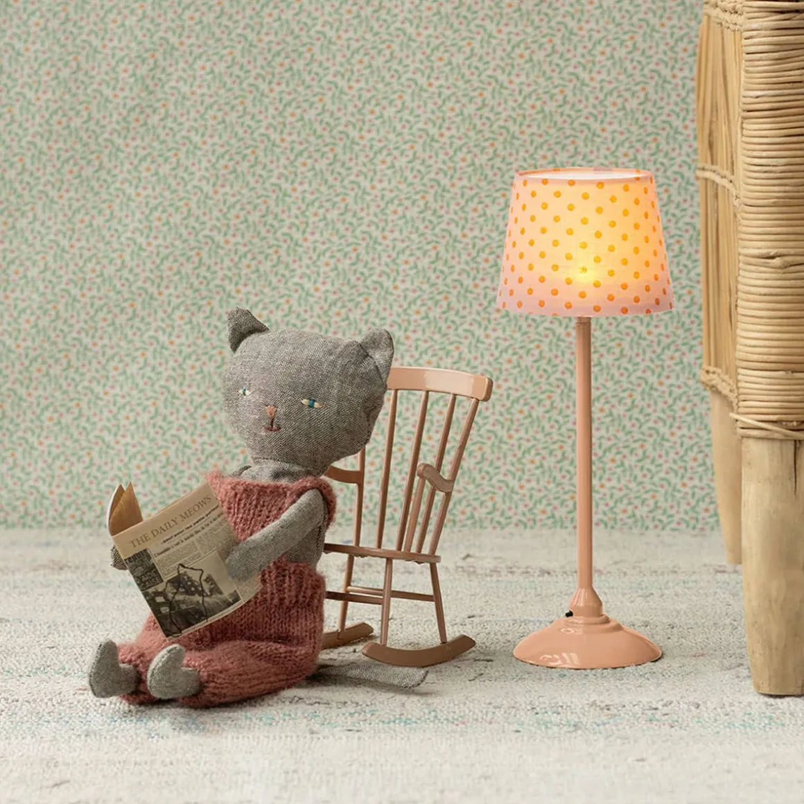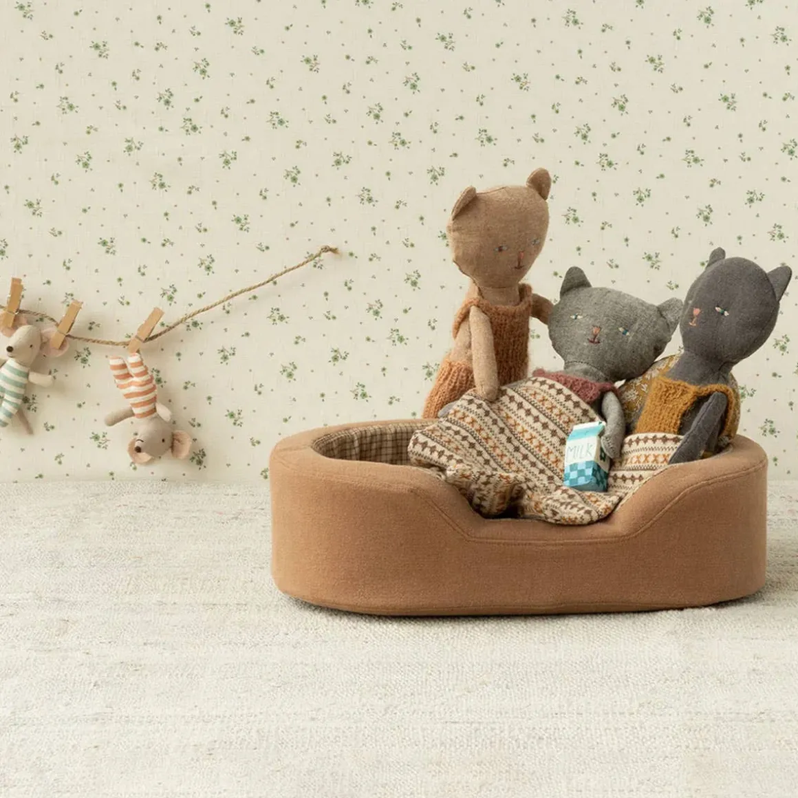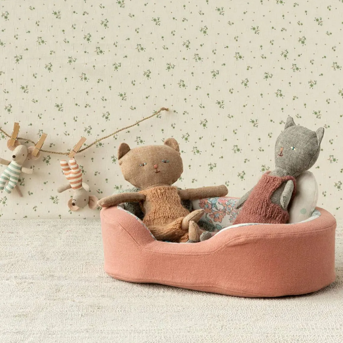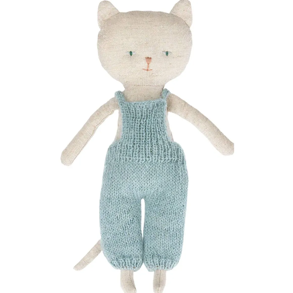 Kittens who fits perfectly into a small hand so they are easy to bring on the go. Kitten comes in a soft knitted overall and fits all Maileg furniture in size mini.