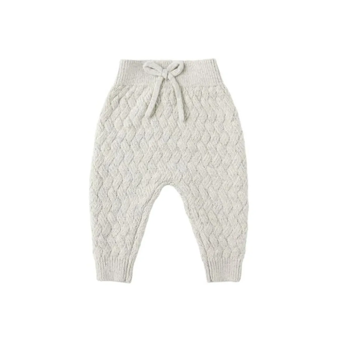 Cozy sweater knit pants with ribbed waist and cuffs and a fixed front tie detail. Pair with Quincy Mae Knit Sweater to complete the look.
