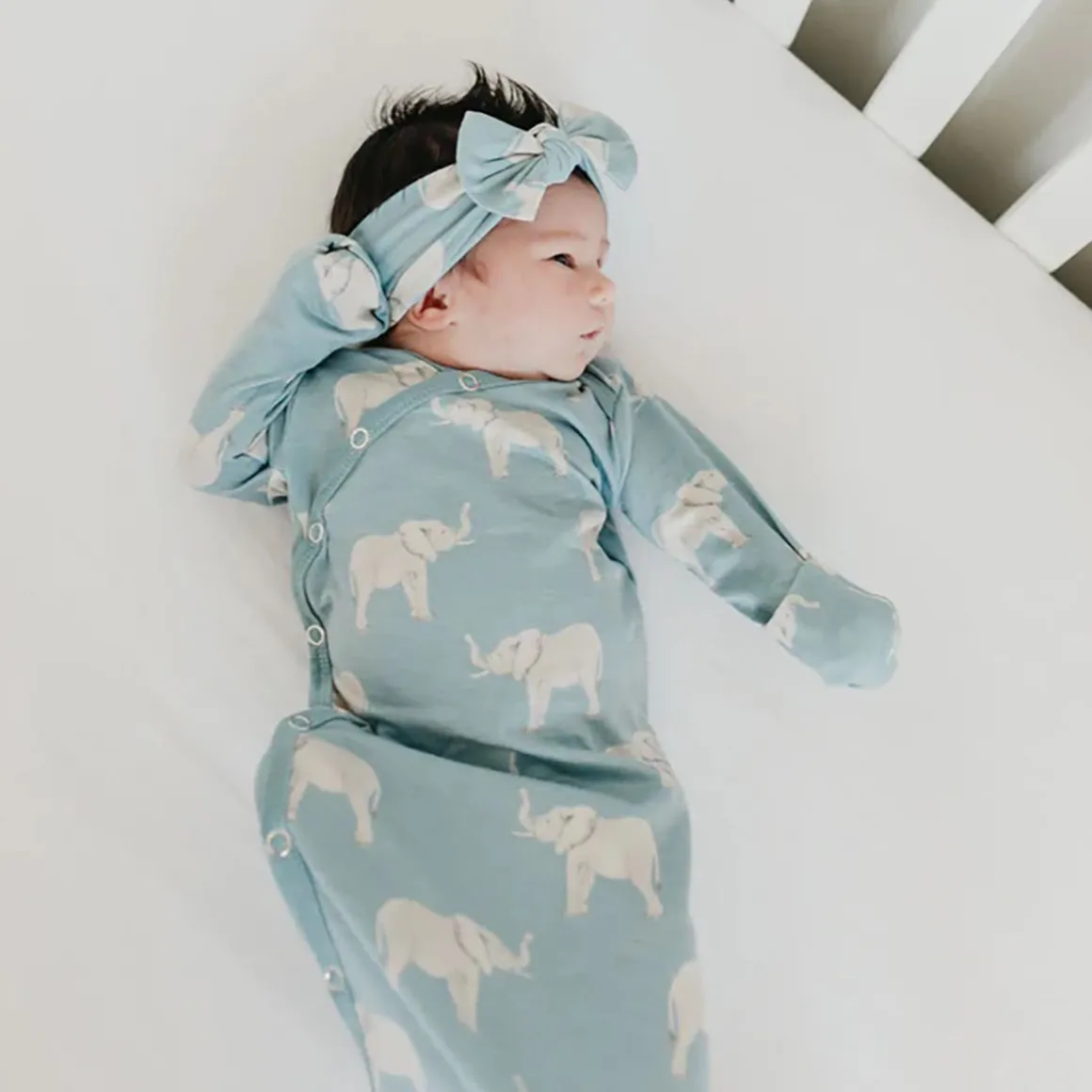 PREMIUM POLYESTER/RAYON BLEND – Made with the same premium knit fabric as Copper Pearls beloved swaddles, this soft and stretchy gown ties at the bottom for easy diaper changes—and room to grow. Available in your favorite Copper Pearl prints, it features unique snaps to make dressing a breeze, along with fold-over hand mitts to prevent scratching. Sure to be baby’s favorite outfit!