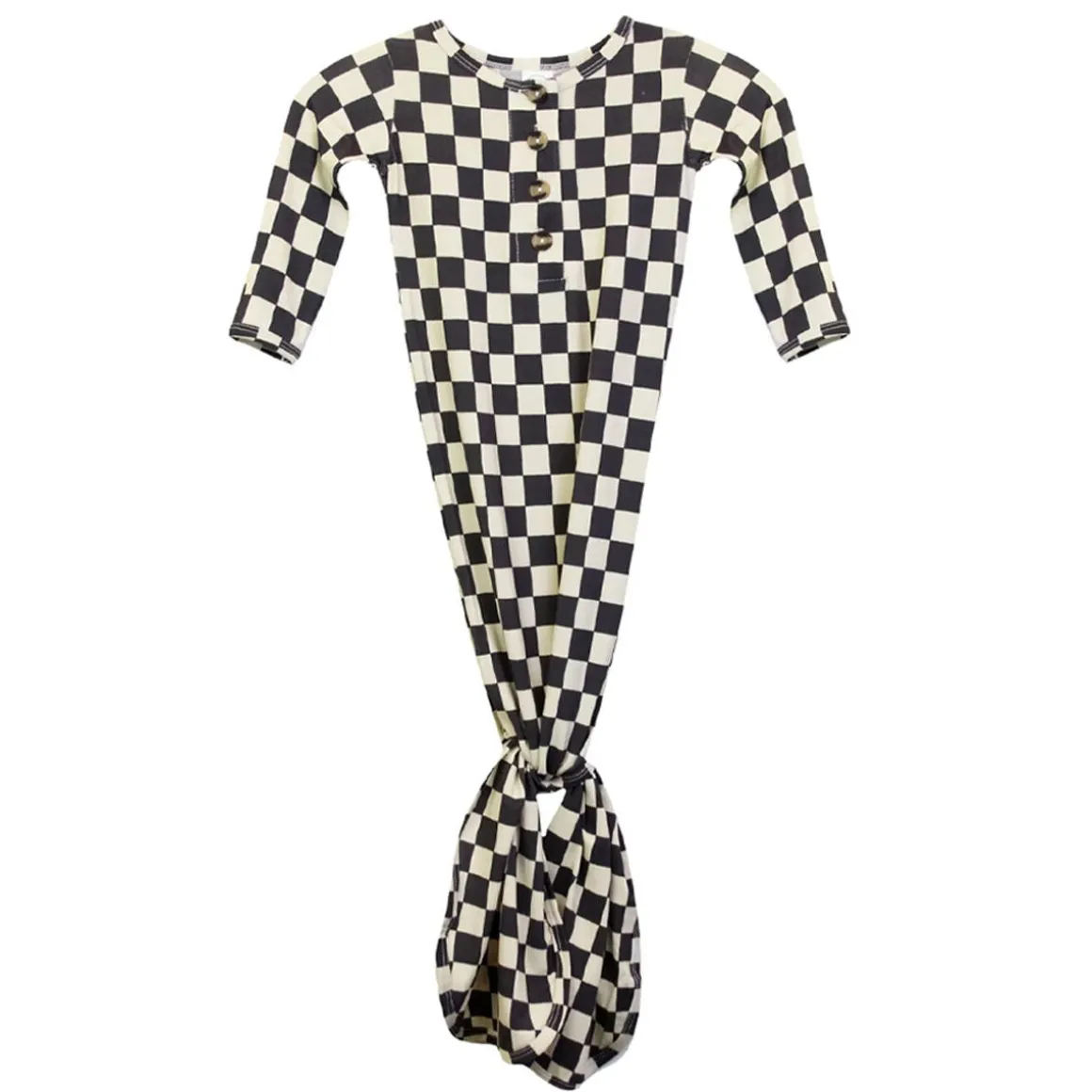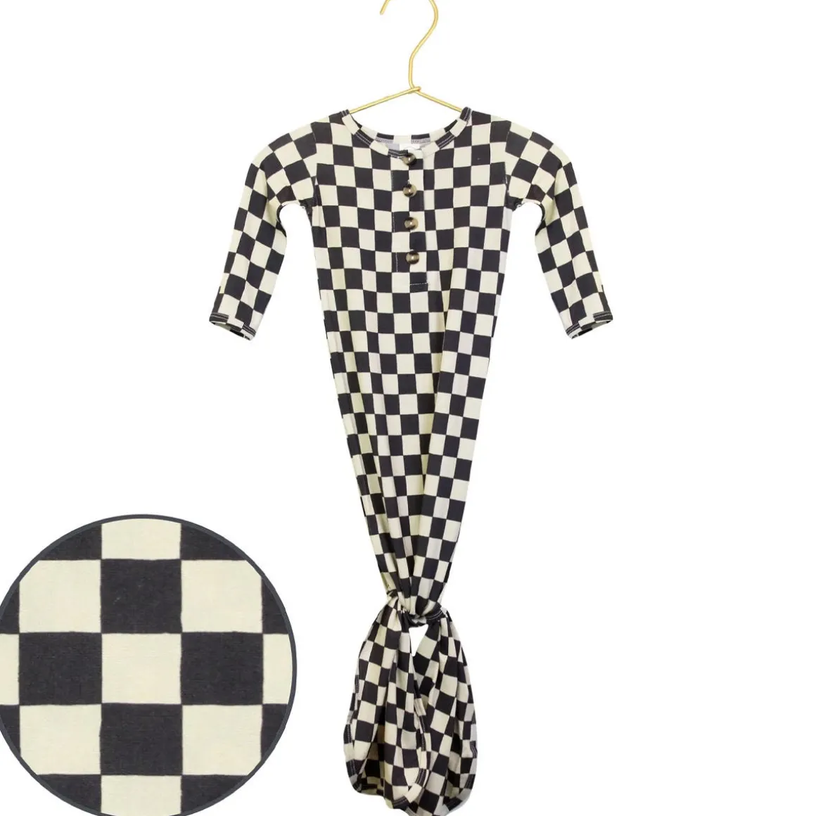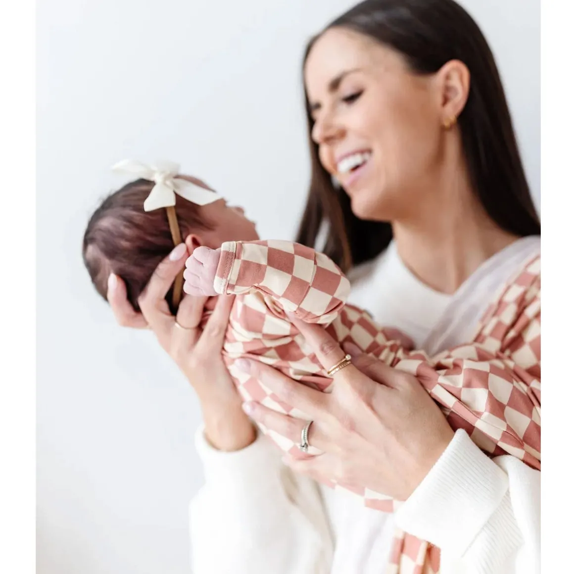 The easiest tie-bottom outfit for day or night. Made for hassle free diaper changes and gentle dressing, I designed this with a button-down front and tie bottom for simple closure (no more snaps at 2am!). Fold over wrist cuffs are the most thoughtful finishing touch.