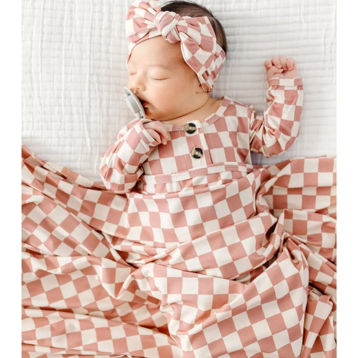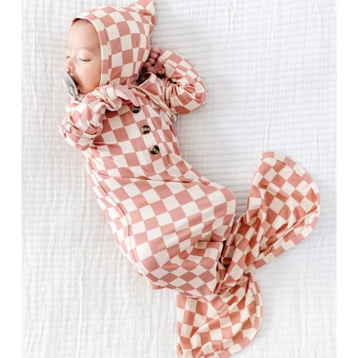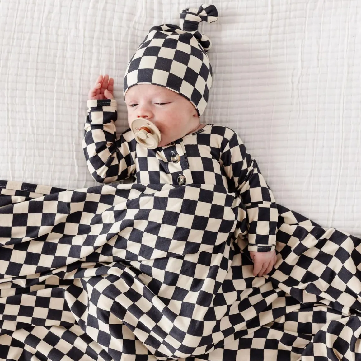 The easiest tie-bottom outfit for day or night. Made for hassle free diaper changes and gentle dressing, I designed this with a button-down front and tie bottom for simple closure (no more snaps at 2am!). Fold over wrist cuffs are the most thoughtful finishing touch.