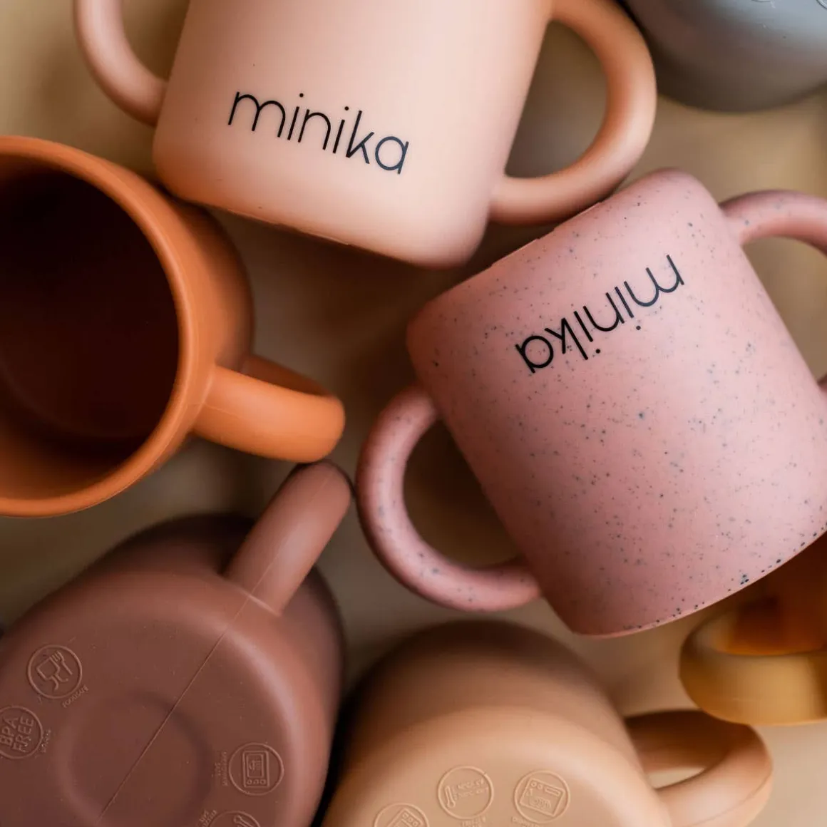 Simple and refined, Learning mug with handles are ideal for small hands. Food grade BPA free silicone.