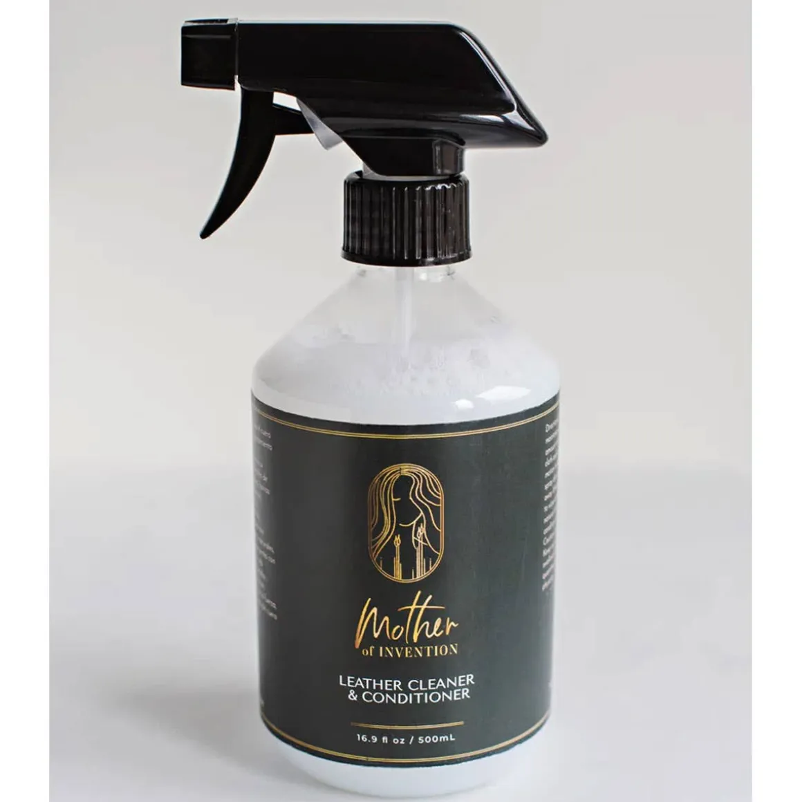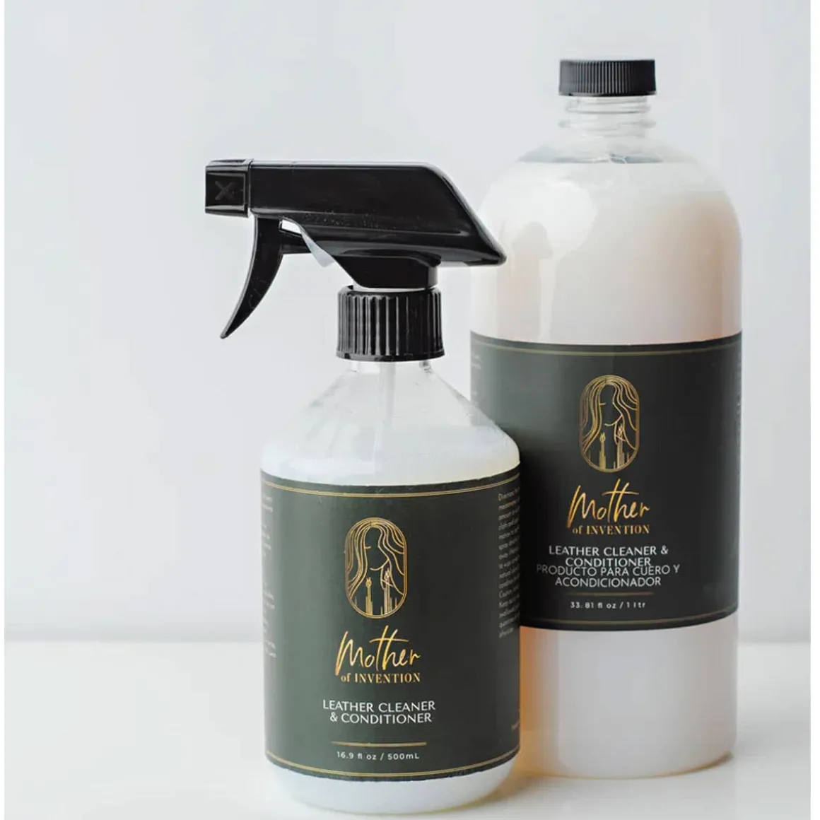 We made this product to use on all of your leather goods. This Leather Cleaner & Conditioner deep cleans and softens leather & helps to prevent cracking. Mother of Invention Leather Cleaner & Conditioner is specially formulated with carefully selected emollients, moisturizers, natural vegetable based detergents and conditioners, to effectively clean, condition and preserve the strength, beauty and resiliency of both new and old leather.