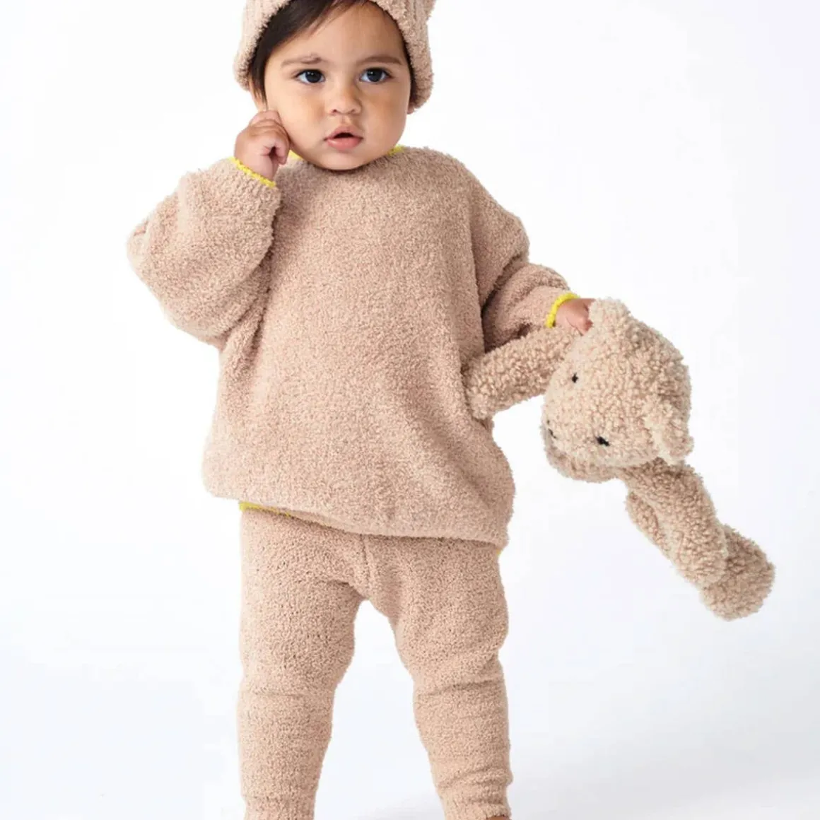 These ultimate soft fitted fuzzy Leggings provide the perfect combination of cozy, comfy, and eco-friendly with their 100% recycled materials composition. Designed for the comfort of the littlest of babes – it’s the perfect pant for every season.