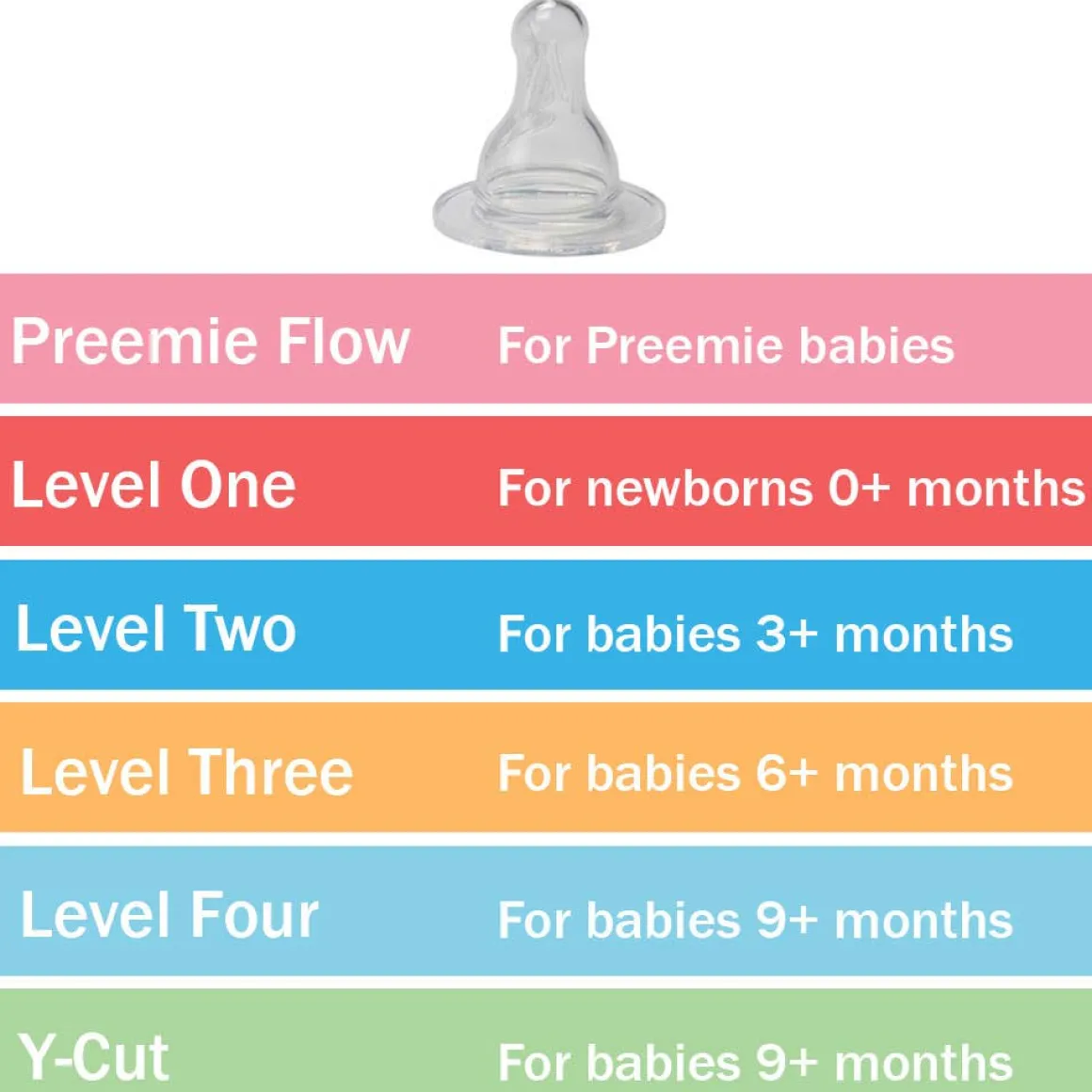 Keep in mind that the Bottle Nipple Chart below serves as a general guideline for choosing a bottle nipple but is by no means an “end-all” solution. It is important to carefully watch the feeding habits of your little one. For instance, is your three-month-old not seeming to get enough from the bottle at feeding time? Moving her up from a Level One to a Level Two bottle nipple may be in order. Adapt your bottle nipple selection to match your baby’s feeding style, regardless of age.