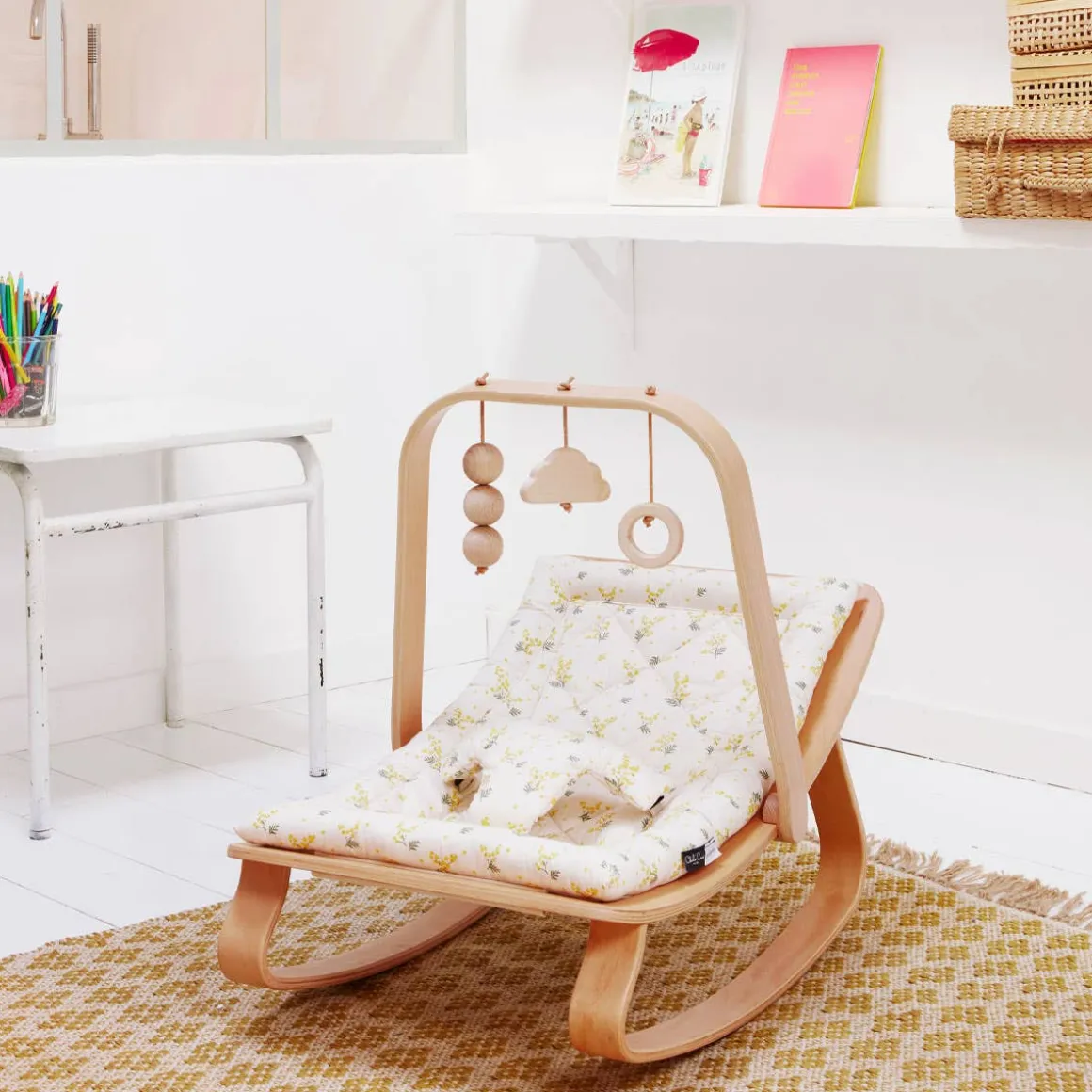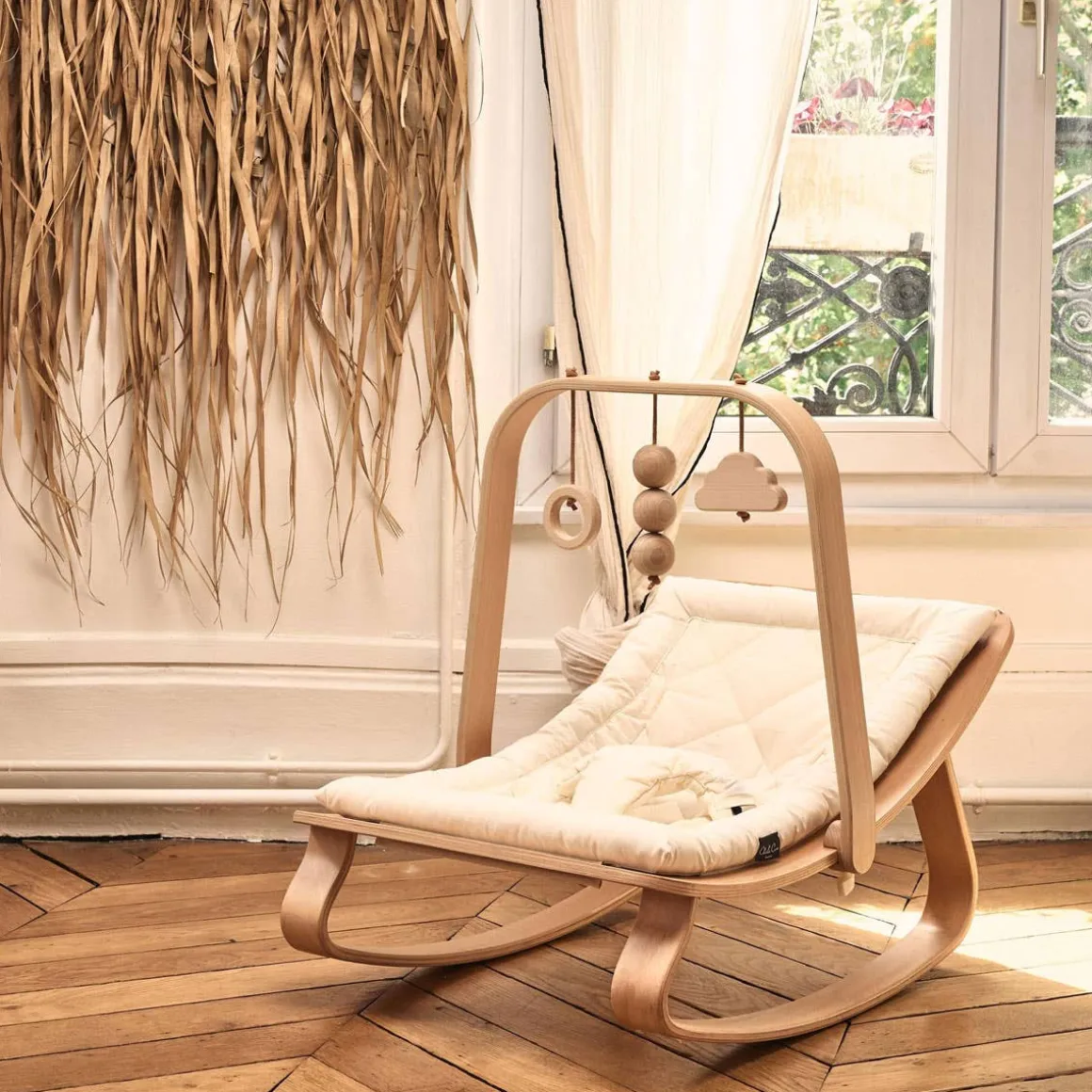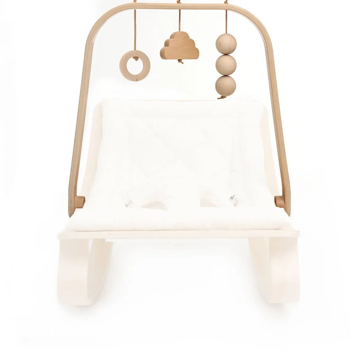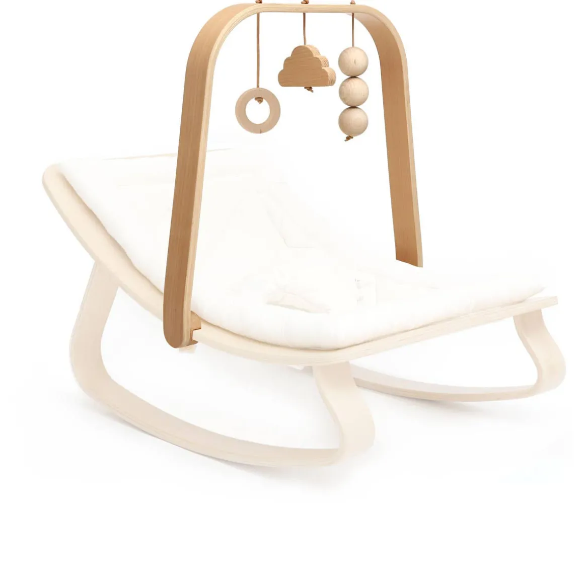 The activity arch with its wooden toys was imagined for the LEVO rocker, it is ideal to stimulate the child from the birth. Its natural wooden toys: cloud, ring and wooden beads will allow the baby to be awakened and entertained in his LEVO.