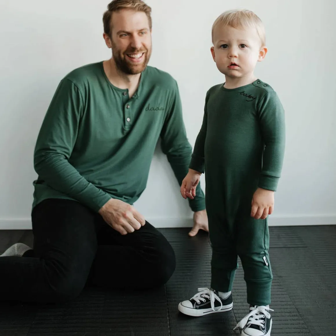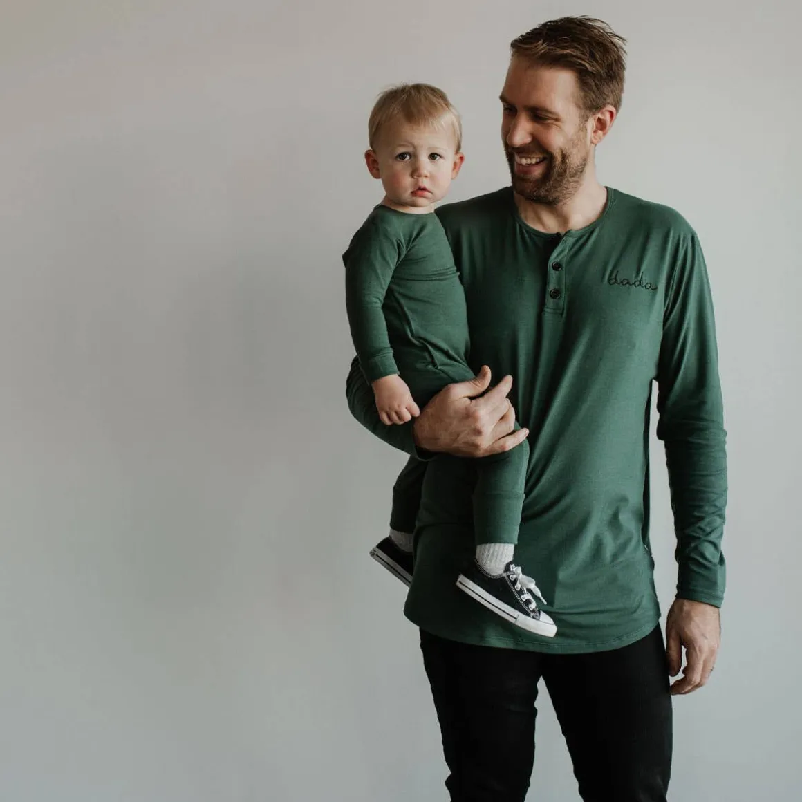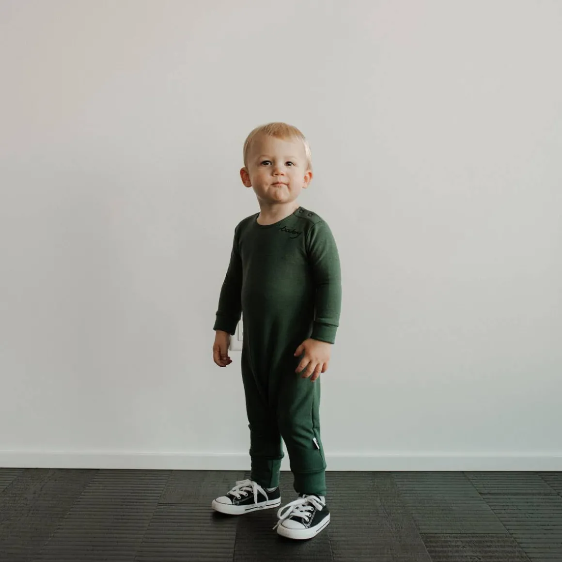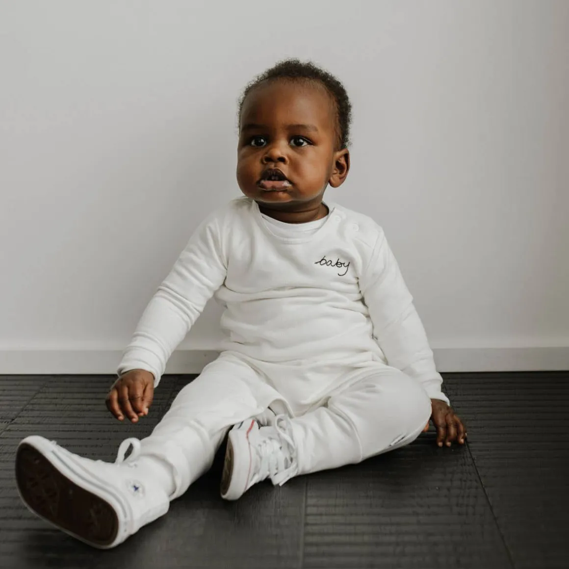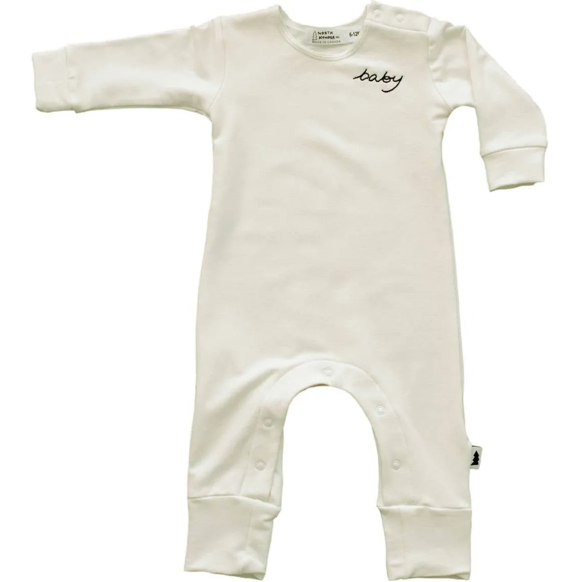 This one-piece makes suiting up and dressing down easy with shoulder and leg snaps. It’s mid weight fabric makes it the perfect everyday piece! On cooler days, add a slouchy hat. We added a stitched “baby” embroidery for the final touch, which matches perfect with North Kinder “mama” styles.