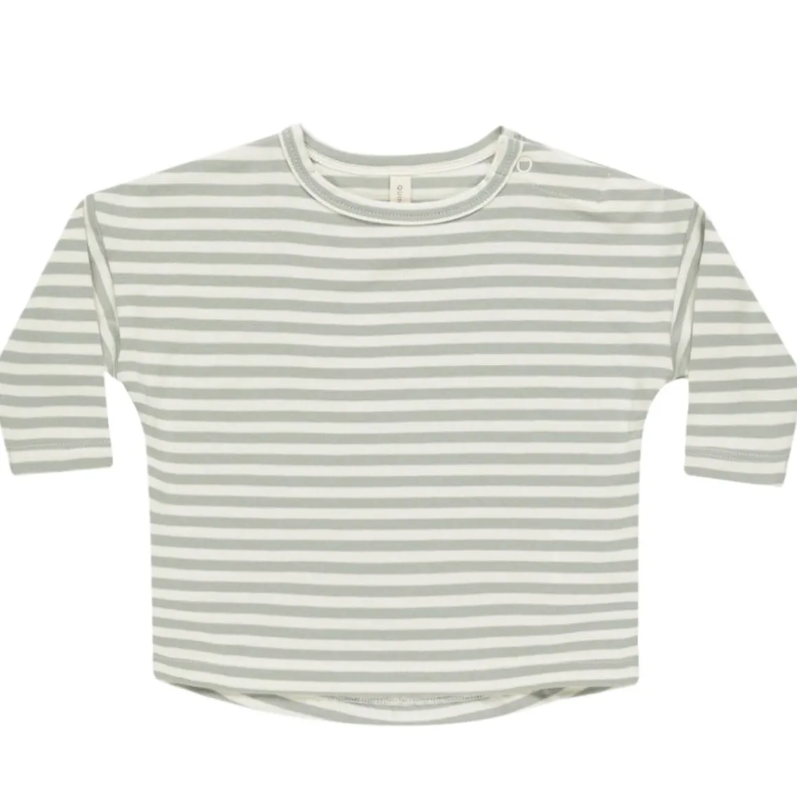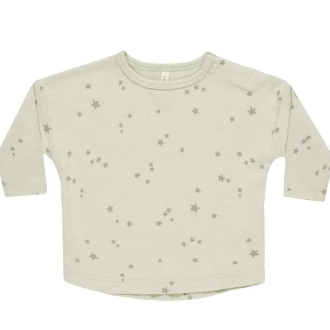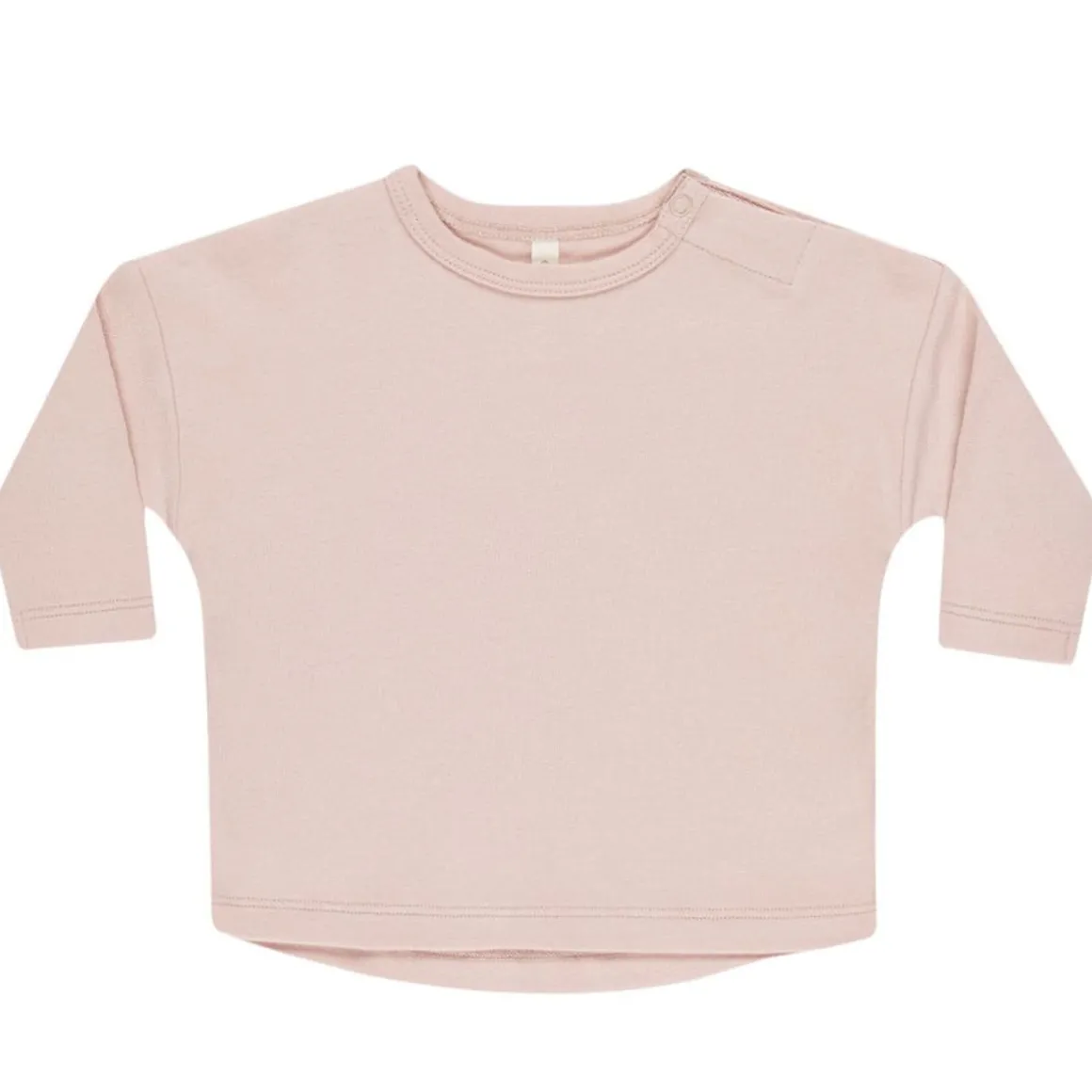 Long sleeve baby tee made from our soft organic brushed jersey fabric. Shoulder snap included in sizes 0-3m – 6-12m for easy changing.