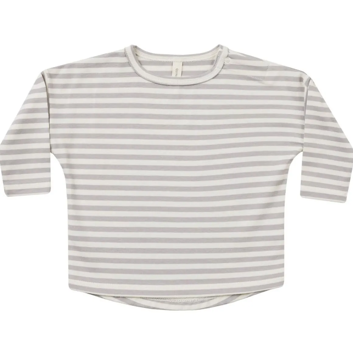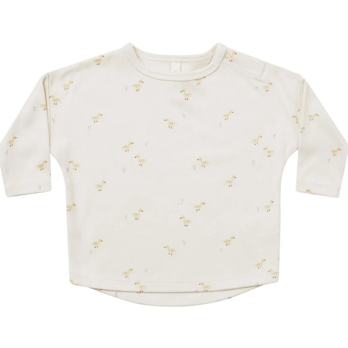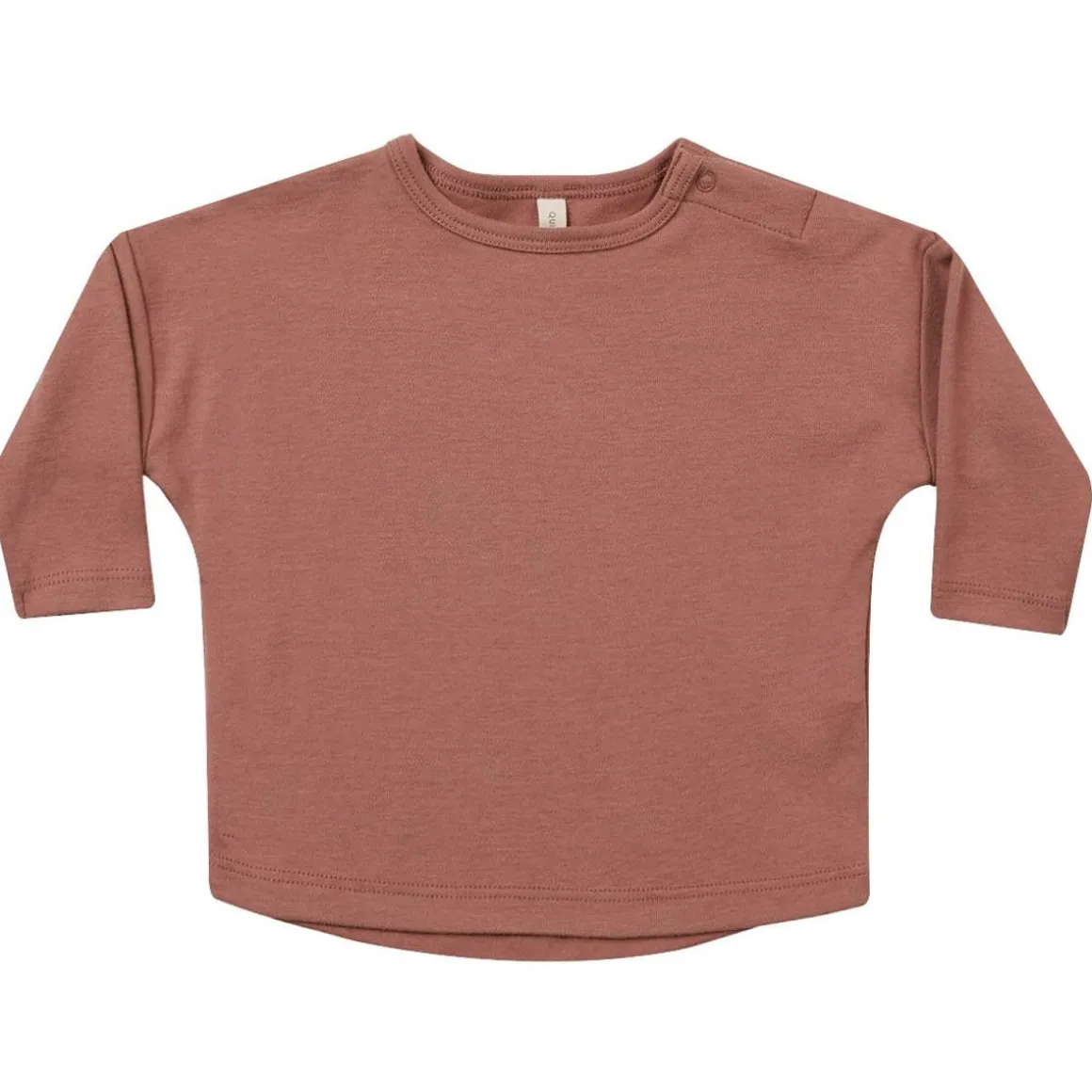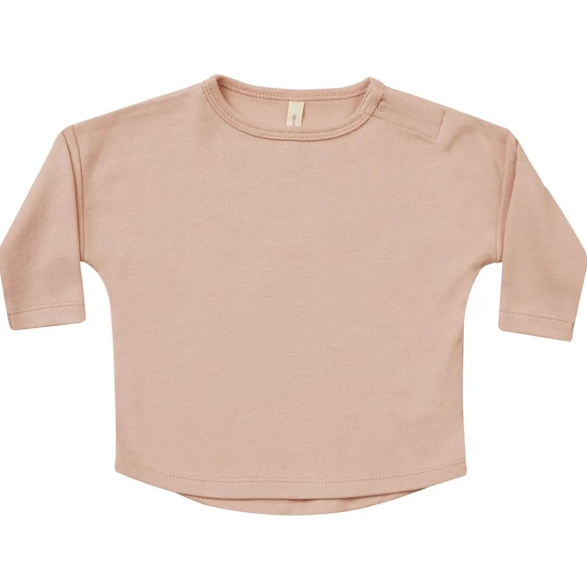 Long sleeve baby tee made of velvety soft organic brushed fabric. Sizes up to 18-24m have a snap at the shoulder for easy changing.