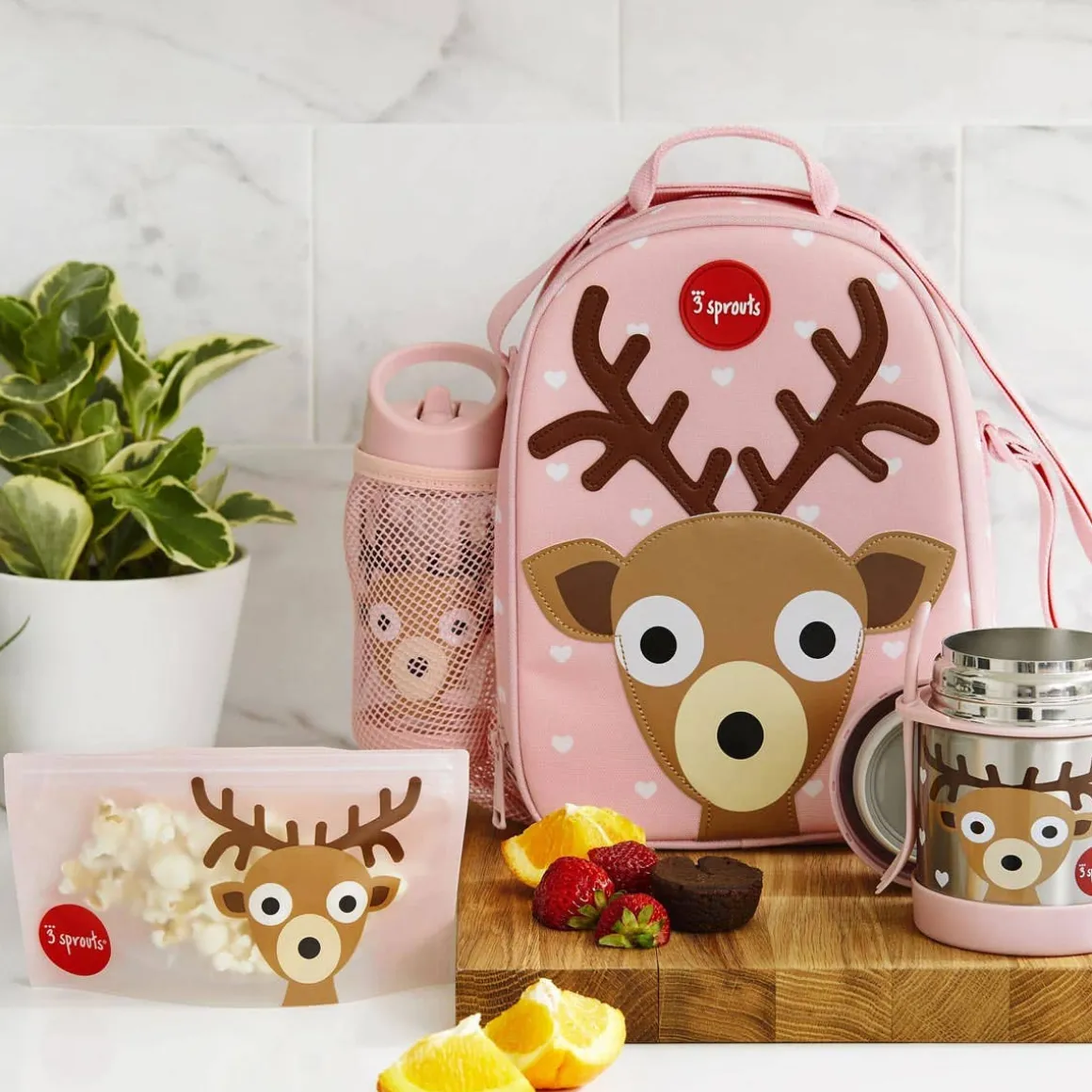 Your little one will go wild for the new 3 Sprouts lunch bag! Sized right to fit a full day’s nutritious lunch and snacks, each 3 Sprouts lunch bag features a lovable animal face children adore while keeping food cold and contained. Send your child out in style with the matching 3 Sprouts bento box, snack & sandwich bag and water bottle too. With an adjustable strap our lunch bag can be carried cross body, keeping hands free. Fully wipeable inside and out, each lunch bag has a write-on name tag on the inside to make sure it finds its way home.