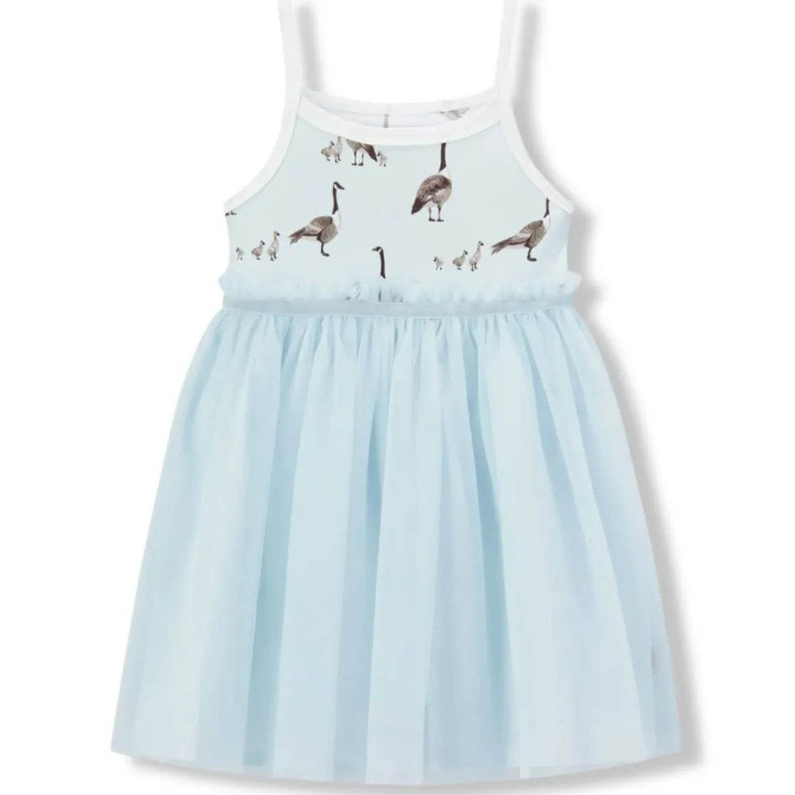 Let your little one twirl with delight in the Luxe Stretch Ballet Dress in the Goose print. This adorable dress features a stretchy bodice and a flowy skirt for ease of movement. Made from 95% bamboo and 5% spandex, it’s perfect for playdates or special occasions.
