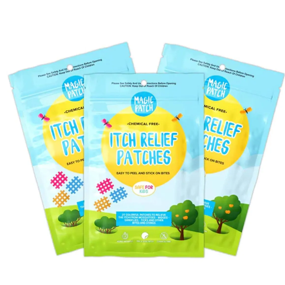 - Using Grid-Relief Technology, Itch Relief patches mechanically lift the skin (no chemicals) to drain the lymphatic system which has been injected by the mosquito’s saliva that causes the itch.