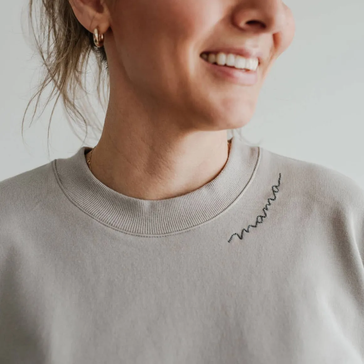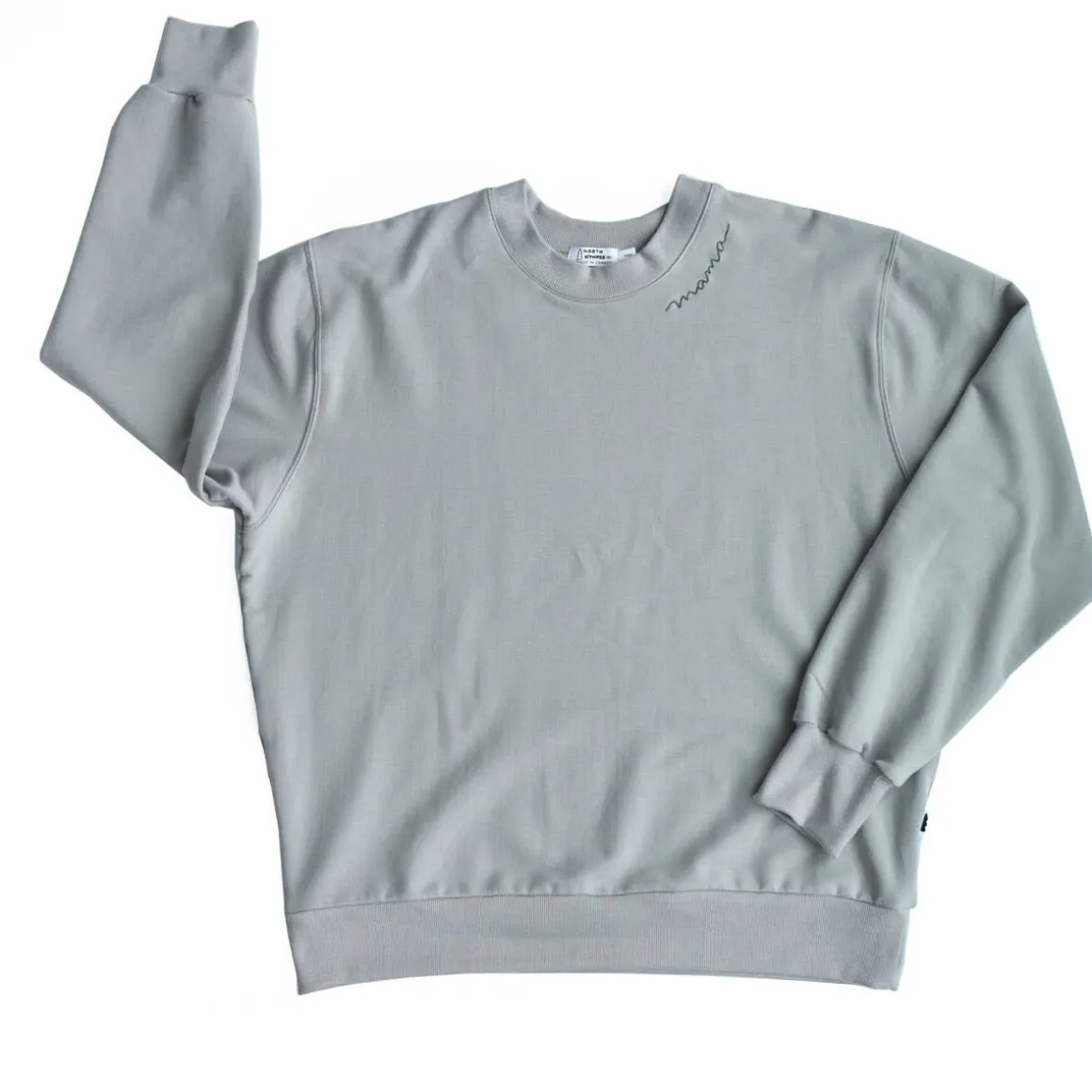 With a special collaboration with Rebecca Robertson, the newest addition to NK mama + baby collection is here! This modern crew neck style features the signature “mama” embroidery in stitch along with ribbed trim on the neckline and cuffs. Made of sustainable soft bamboo fleece fabric, cuddle time with baby will be cozier then ever!