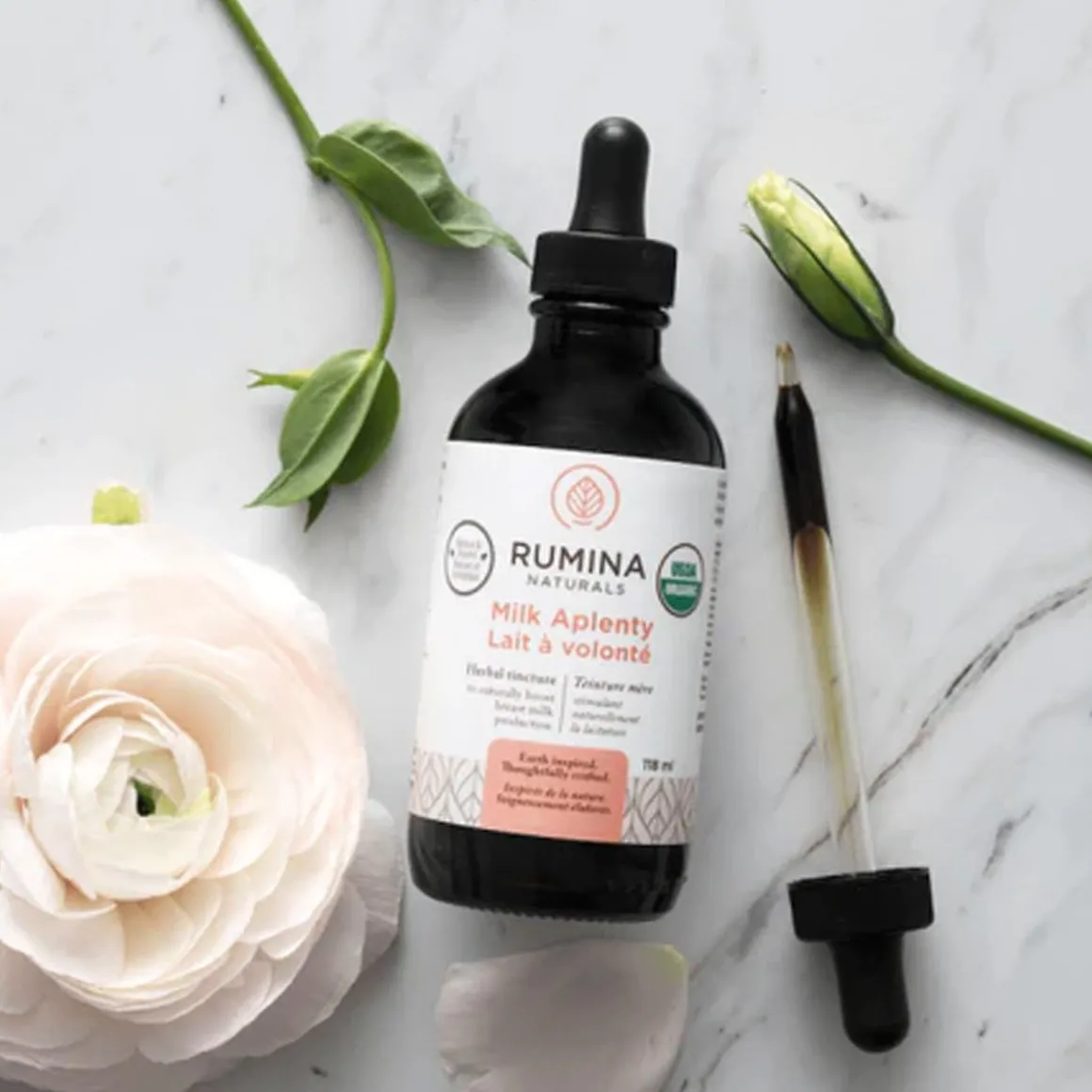 Harness the power of nature with Rumina Naturals bestselling lactation support supplement. Milk Aplenty is a certified organic herbal tincture made from a blend of nature’s most potent herbs. (A tincture is the most effective delivery method to ensure maximum absorption.)