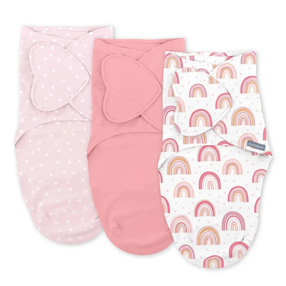 Keep your precious baby calm and comforted with the new SwaddleMe by Ingenuity Monogram Collection. We have taken everything that you love from our original swaddle and gave it a fresh look with the new added easy change pocket. This 0.5 TOG swaddle is designed to fit babies from newborn to 3 months, 7-14 pounds, and up to 26 inches long. The easy-to-use swaddle creates a snug, womb-like feeling for your little one. Simply position the adjustable, heart-shaped wings around your baby and press on the hook-and-loop closures to secure. The velcro closures prevent the swaddle from loosening, therefore keeping baby safely secure. The cozy fit of this swaddle helps prevent the startle reflex that can wake baby. The hip-healthy design leaves plenty of room for baby to move. This soft swaddle is made of durable natural fiber (100% cotton) and is machine-washable for easy cleaning. A unique pocket fold design makes for easy diaper changes too – no snaps, zippers, or hooks needed. This baby swaddle blanket wrap is part of Stage 1 in the SwaddleMe Stages of Healthy Sleep, made for newborns who aren’t rolling over yet and like to be swaddled with their arms in. When baby starts showing signs of rolling, transition to Stage 2. Wrap your baby in love with the SwaddleMe by Ingenuity Monogram Collection Swaddle. It’s also a precious (and welcomed!) baby shower gift!
