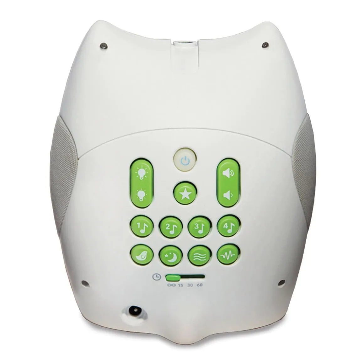 - Auto-off timer sets for 15, 30, 60 minutes or continuous play