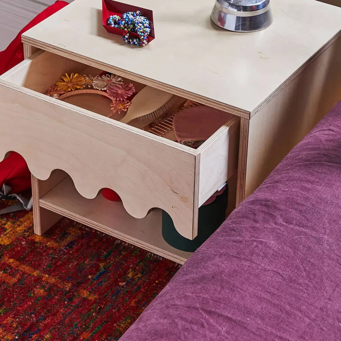 The Oeuf Moss Nightstand features a bold-yet-simple wave motif that’s an instant statement in any room, whether minimalist or maximalist. It smartly provides both open and closed storage, including a drawer to contain clutter.