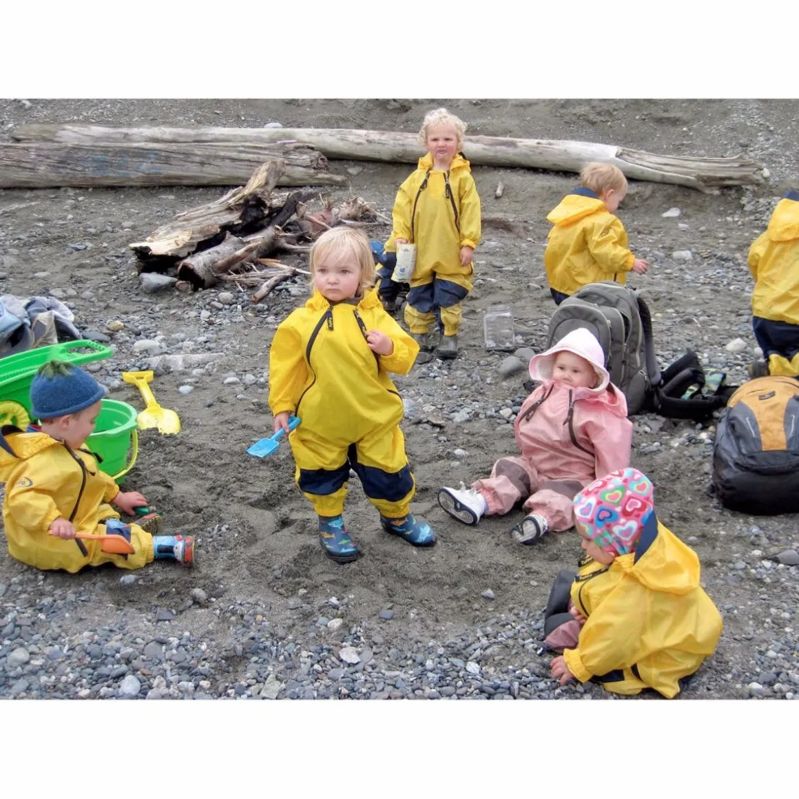 These unique waterproof coveralls offer toddlers full-body coverage and protection from the rain and elements.