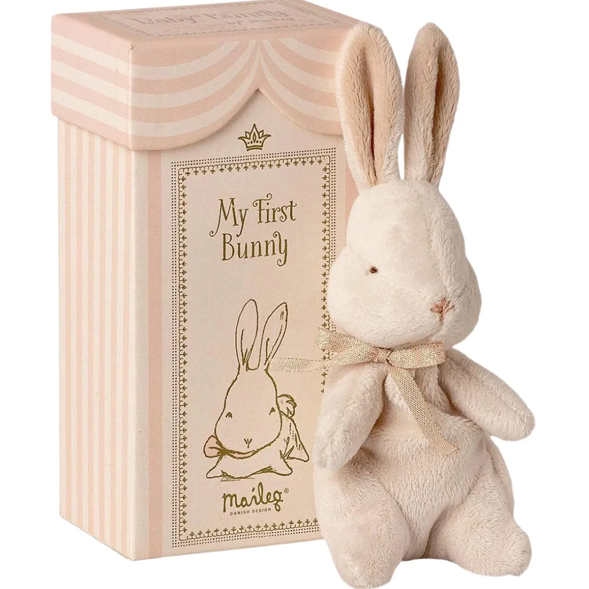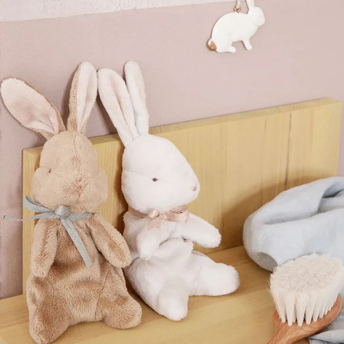 My first bunny is perfect for small hands. It is made in a soft plush quality and has a colored ribbon around the neck. It comes in a beautiful gift box, inside you can add the birth information.