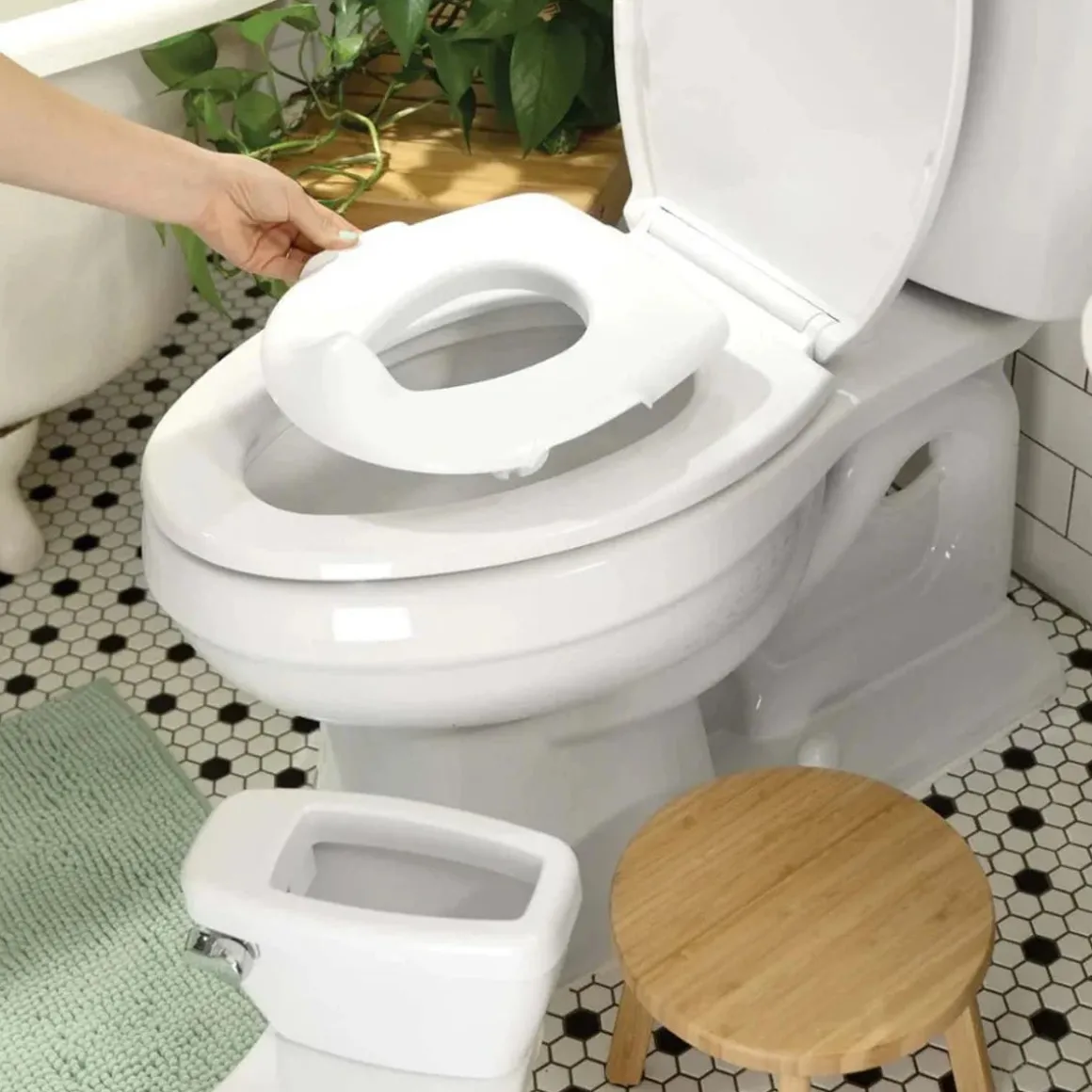 Potty training is easier (and more fun) with the Summer by Ingenuity My Size Potty Pro. Designed to look and feel like a real adult toilet, the My Size Potty Pro is a toddler floor potty that helps to ensure a comfortable and confident progression to the real thing. The chrome-style toddler potty handle makes a realistic flushing sound that rewards your little one for a job well done. The removable potty topper can be used as a toddler toilet seat on an adult toilet to help your toddler become a potty training pro. A built-in storage compartment is spacious enough to hold books, a tablet, wipes, and anything else your little one needs to promote healthy habits during the potty training process. With a removable bowl and integrated splash guard, the My Size Potty Pro is easy to clean – perfect for all of toilet training’s messy moments.