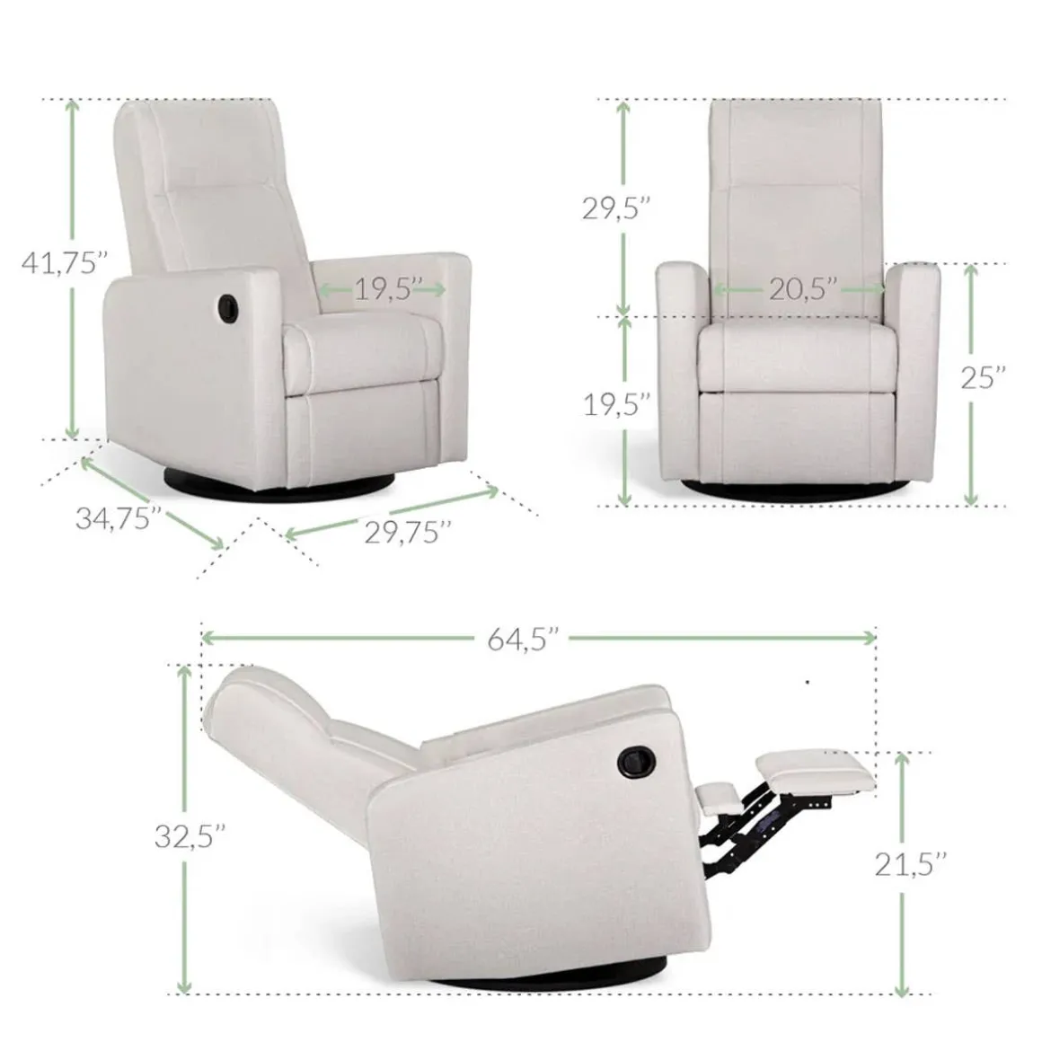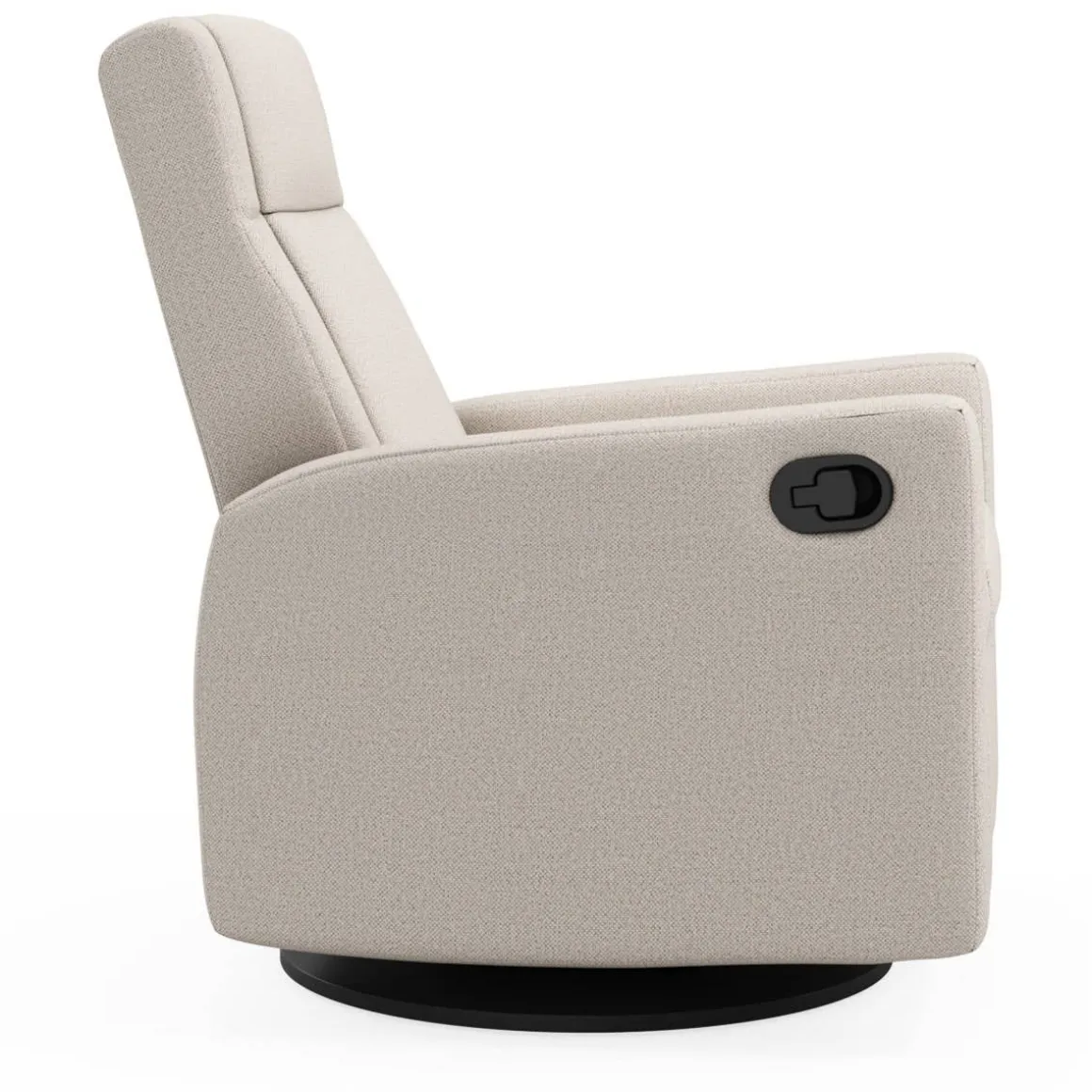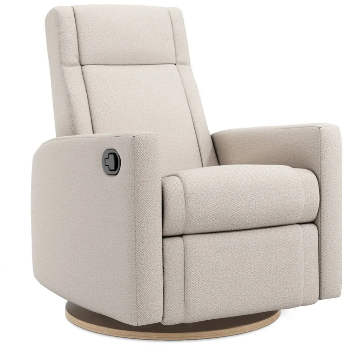 The NELLY Upholstered Swivel Recliner Chair by Jaymar BB is an eye-catcher with its trendy design and 360° swivel base. Handcrafted in Canada using only the finest materials and designed with clean lines, this swivel recliner chair will become a durable piece of furniture for years to come. The built-in footrest is activated by a lever hidden on the side of the chair. You can recline the back of the chair by applying body pressure to achieve the most relaxing position. Combined with the 360° swivel capability and Leggett&Platt* smooth quiet gliding and reclining system, this chair is simply unmatched.