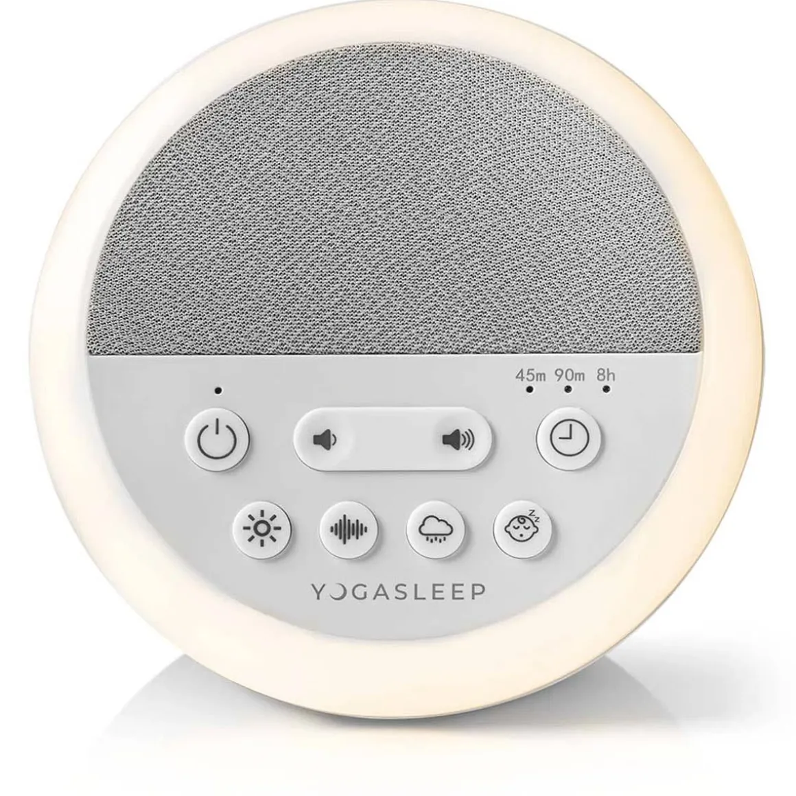Help your baby or child fall asleep faster, stay asleep, and mask distracting noises with the Yogasleep Nod Sound Machine and Night Light. Featuring 20 sound options including white noise, fan sounds, nature sounds, and eight lullaby tracks. The Nod light and sound machine has a soft, dimmable night light in amber tones that soothes rather than disrupts sleep cycles. Run the sound machine all night long or set the auto-off timer with three timer options: 45 minutes, 90 minutes, or 8 hours. Sleek and compact white noise machine fits seamlessly with any bedroom or nursery. Easy to operate with a simple and user-friendly interface. Yogasleep has 50+ years of making the best white noise machines for home, baby, and work.