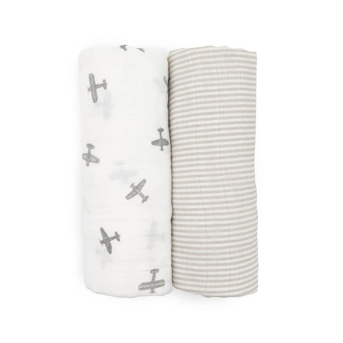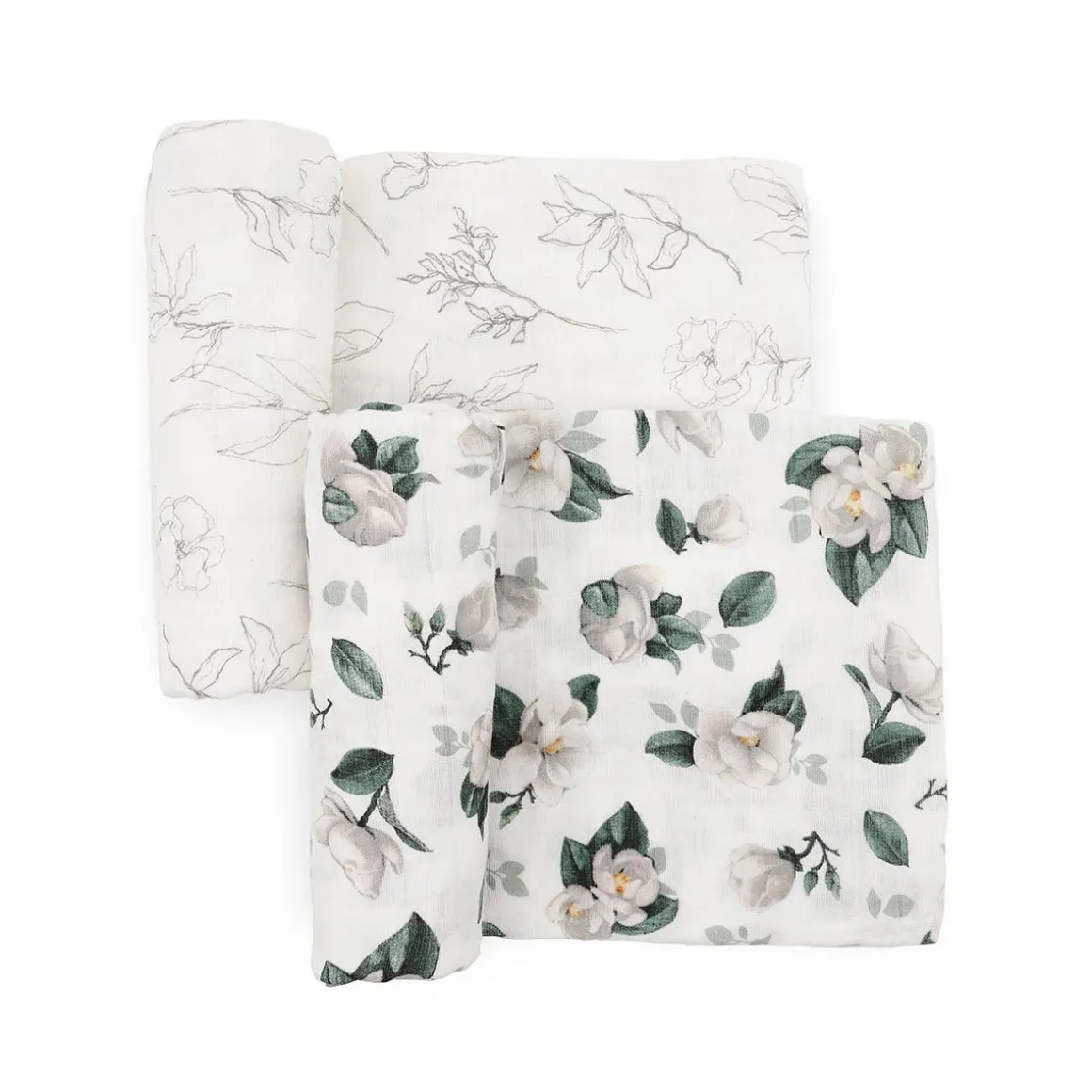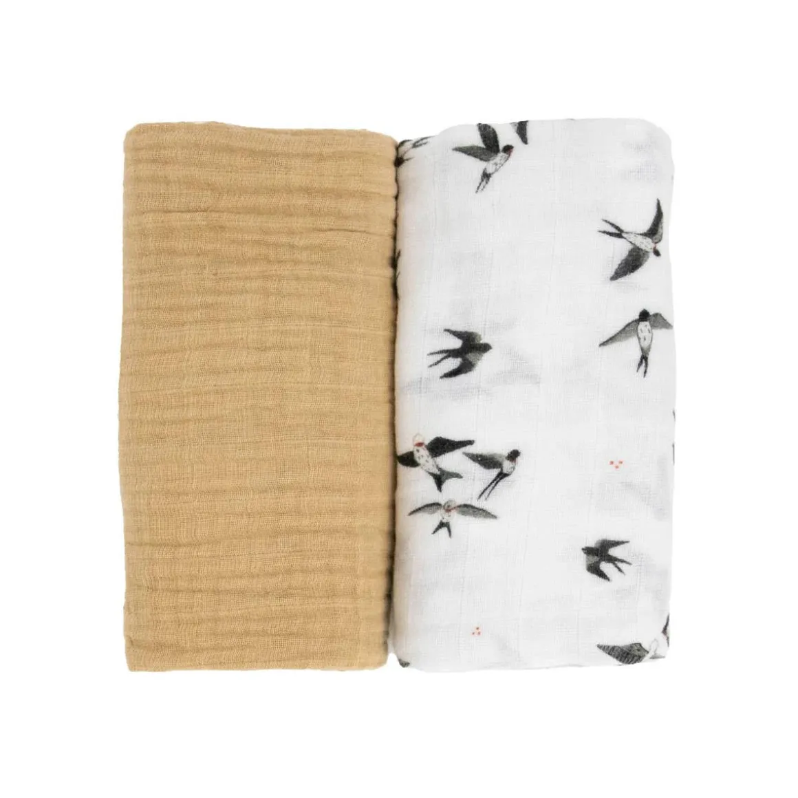 A giftable and complementary swaddle set made from 100% GOTS certified organic cotton and OEKO-TEX certified. They make a perfect baby shower gift and are a must have for new parents! The breathable muslin fabric makes it great for swaddling, playtime, nursing and on-the-go.