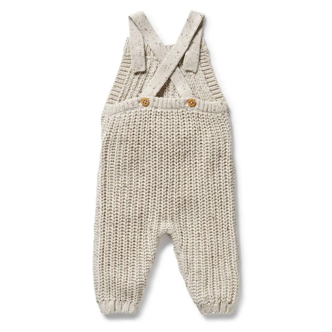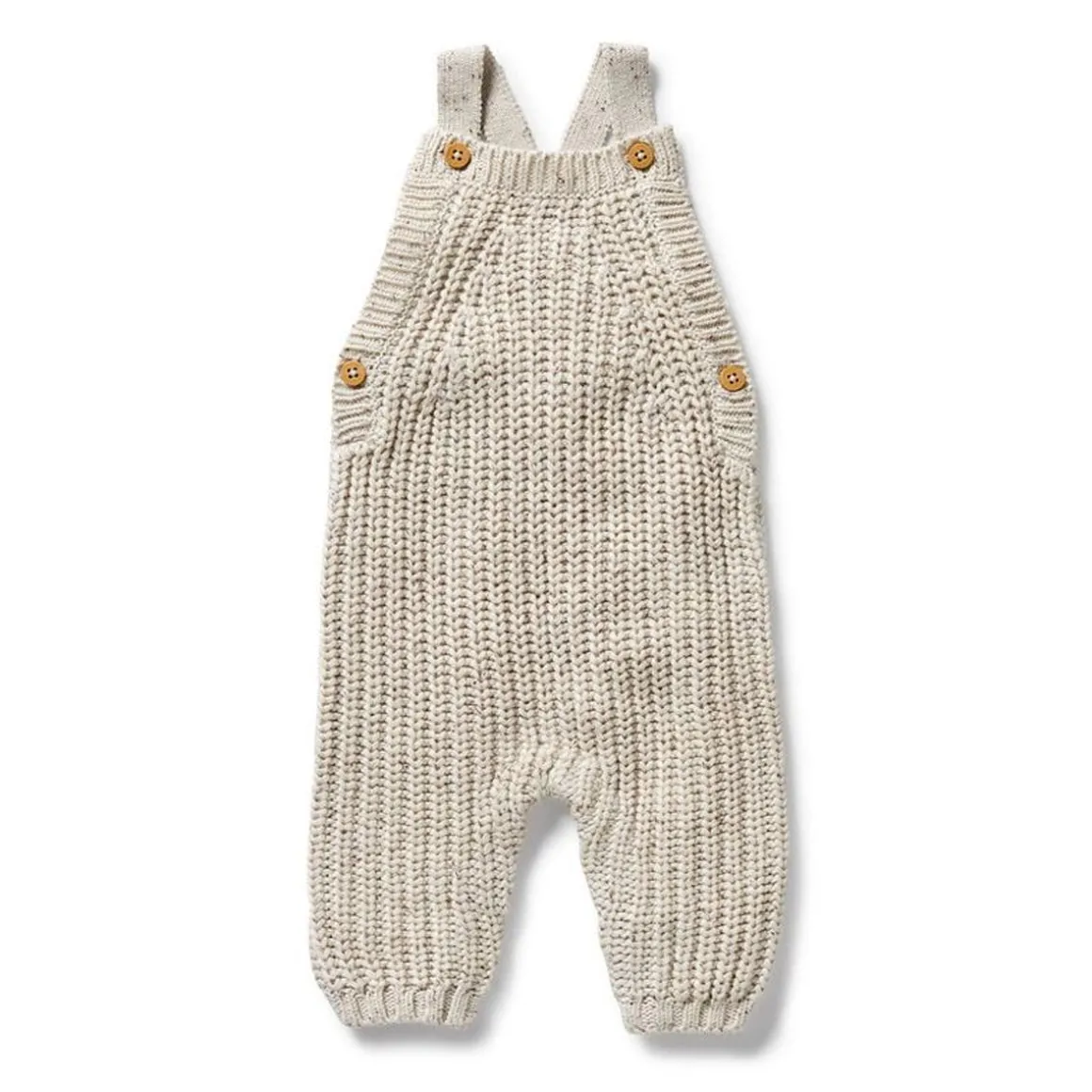 This full length knit overall features button up shoulder straps and a snap leg opening for quick and easy nappy changes. Made from a beautiful blend of cotton, bamboo and wool it’s a style you’ll want in every colour. Pair back with an organic long sleeve top for an adorable winter layered look.