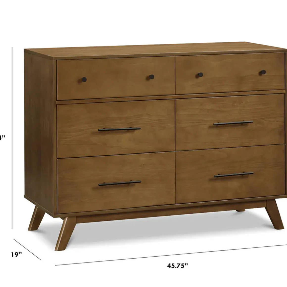 The Otto 6-Drawer Dresser captures the timeless mid-century modern design with its clean lines, flared legs, and metal hardware. Made with high-quality materials, this dresser features 6 drawers with ample storage for your baby’s essentials. With its timeless design, the Otto dresser will complement any bedroom furniture.