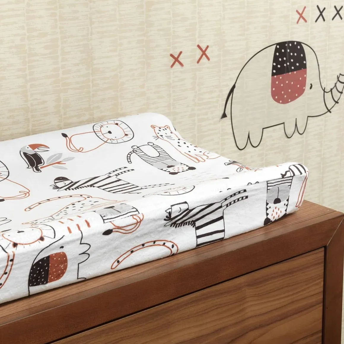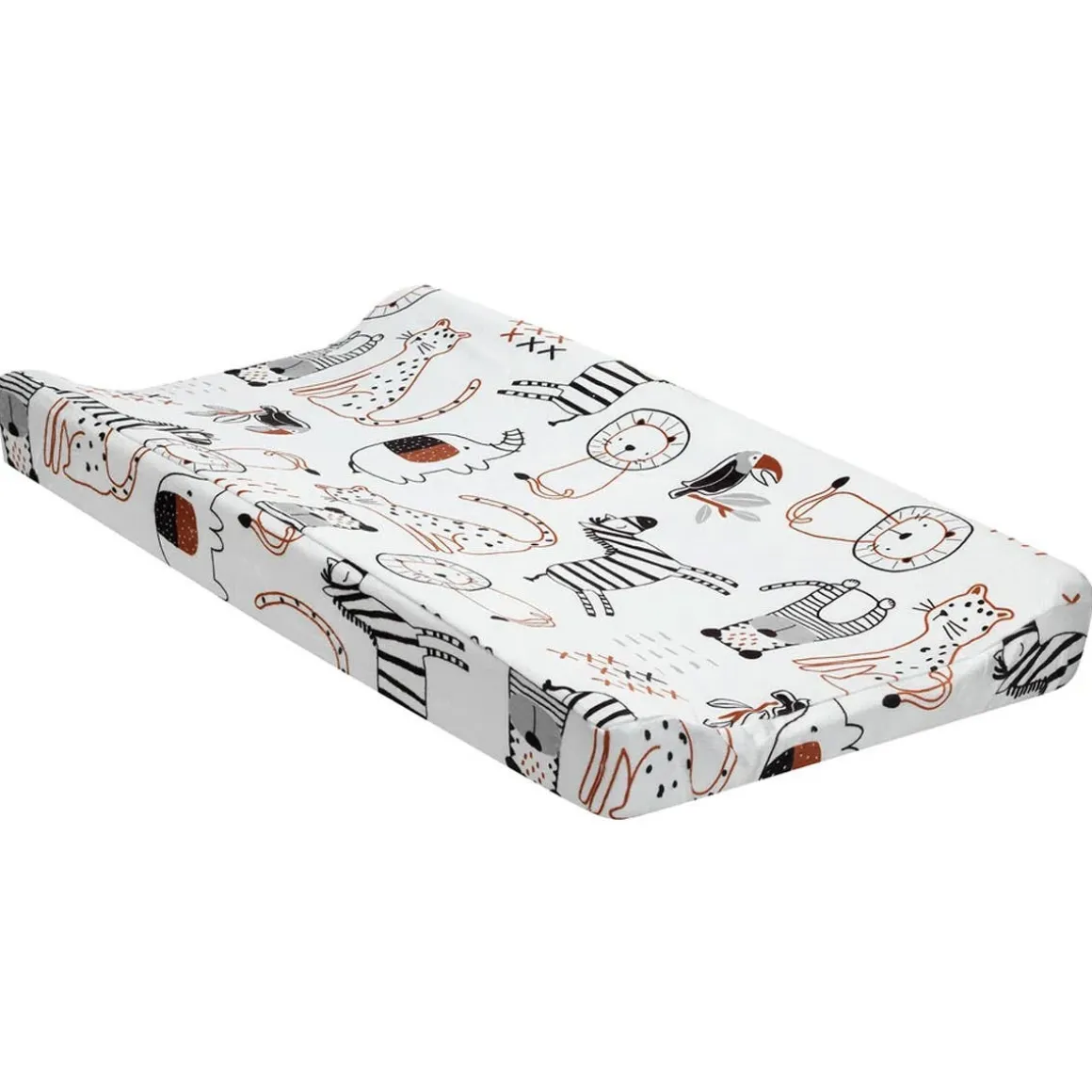 A soft minky changing pad cover is perfect for changing your little baby. It is soft and cozy and features all of friendly jungle/safari animals. There are buttonholes for the changing pad straps so your little one is safe and secure while getting their diaper changed. It is machine washable for easy care.