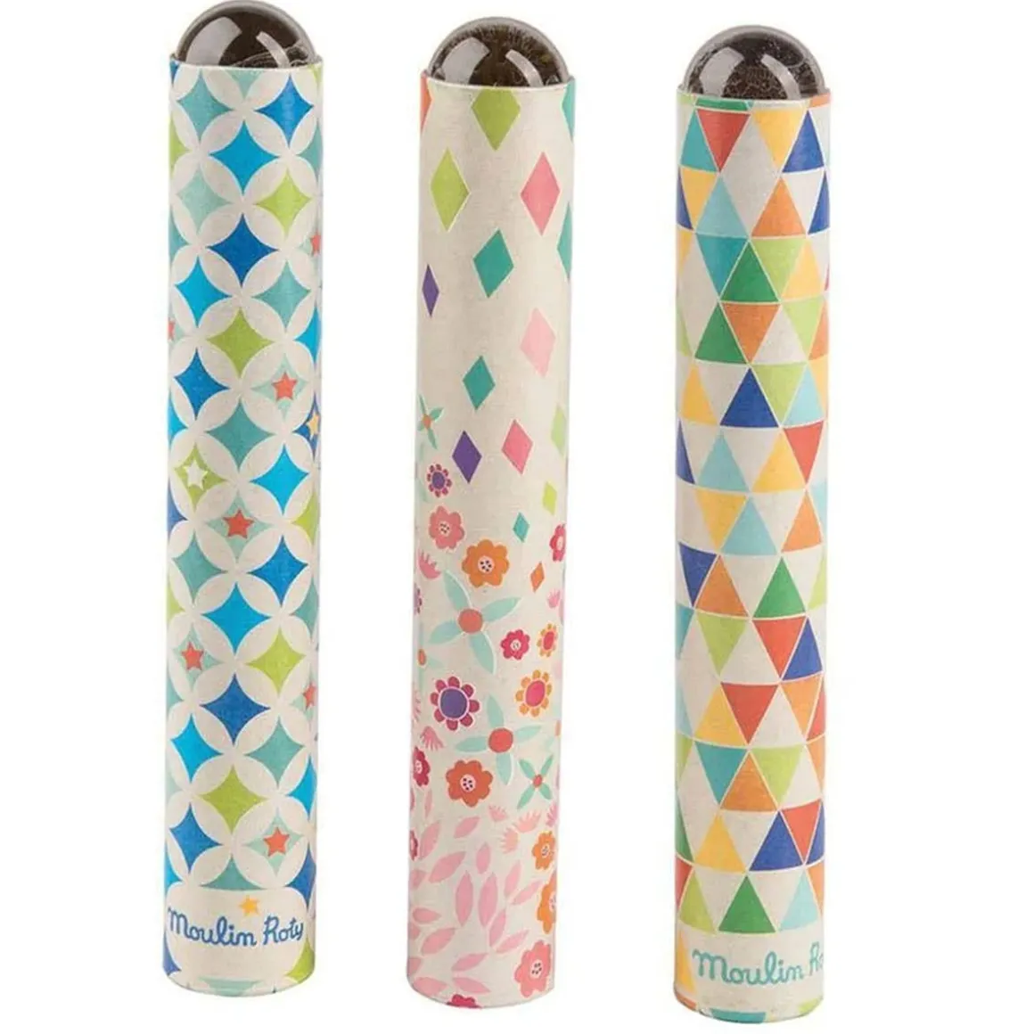 A simple and beautiful classic kaleidoscope. This kaleidoscope from Moulin Roty has a lovely printed paper design on the outside and fascinating patterns created by fractured light when you look though the eye piece. Twirl around and look at different objects and light sources to create new and stunning patterns.