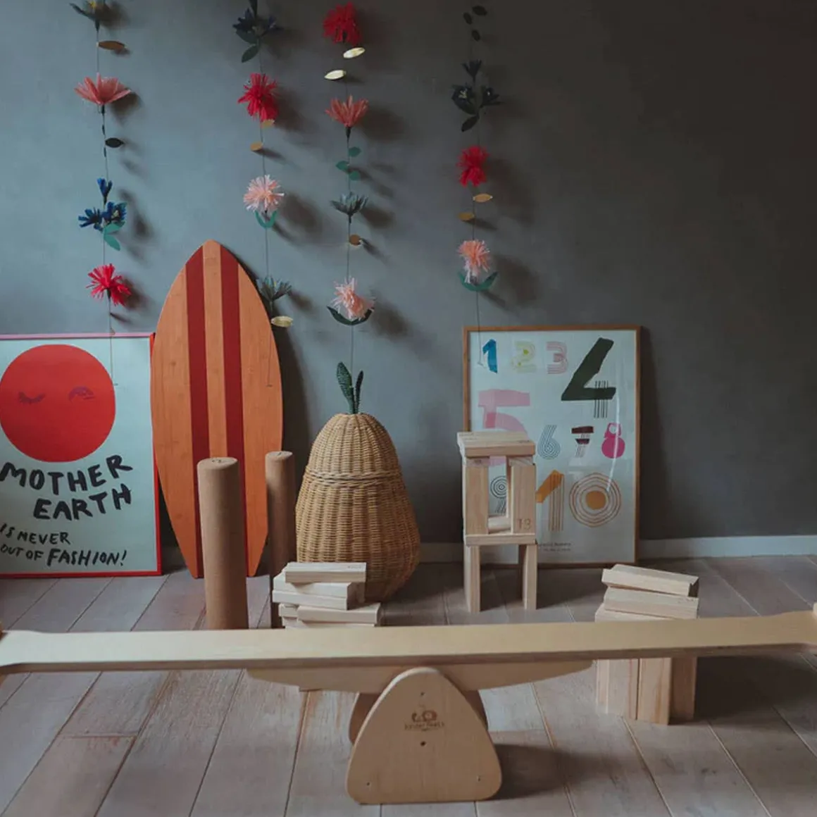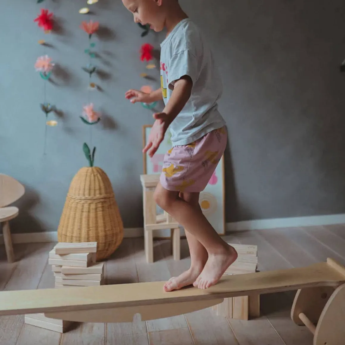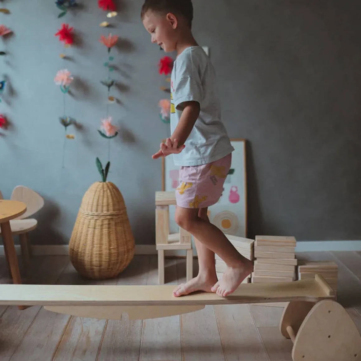 It’s the Kinderfeets Pikler Balance Beam! This versatile platform functions as a seesaw, bench, magical walkway, stretching surface, performance stage, pirate’s plank, and so much more. How will your little one’s imagination direct them?