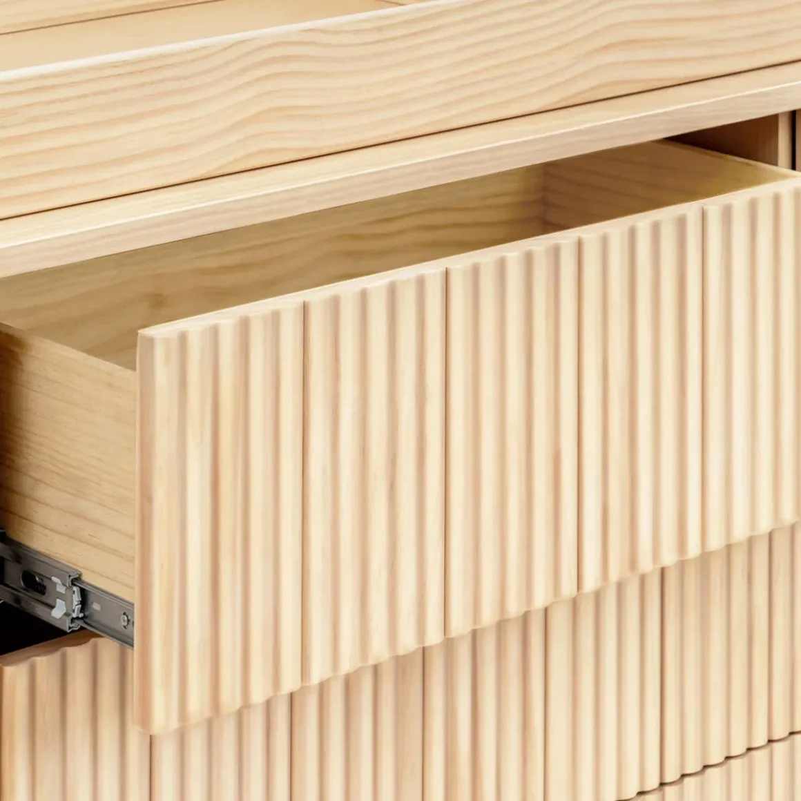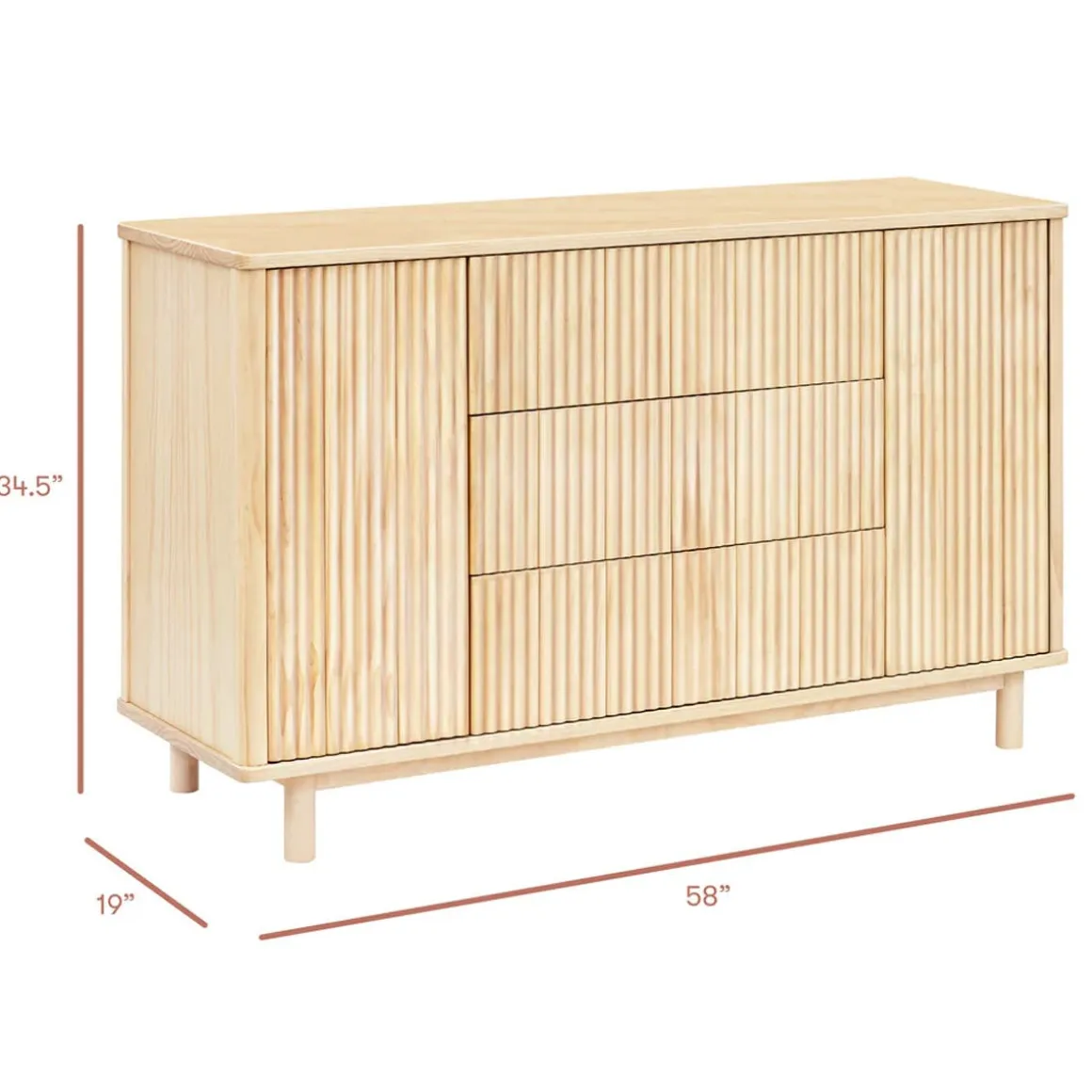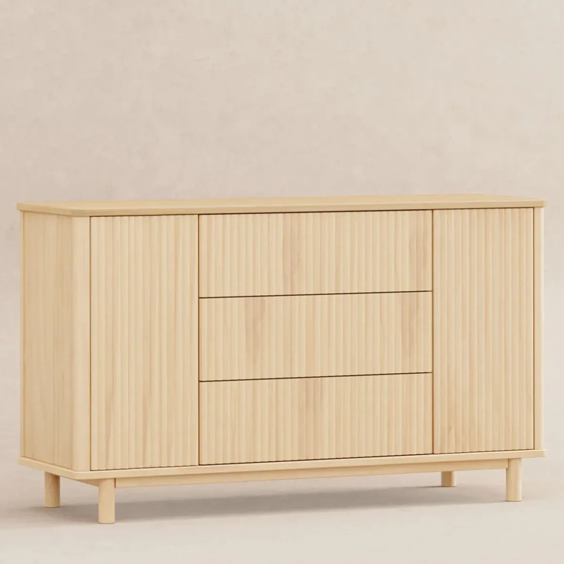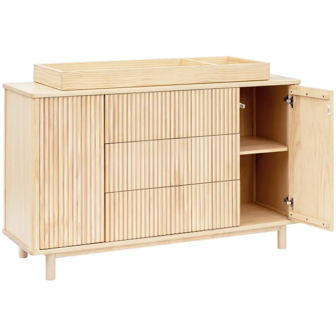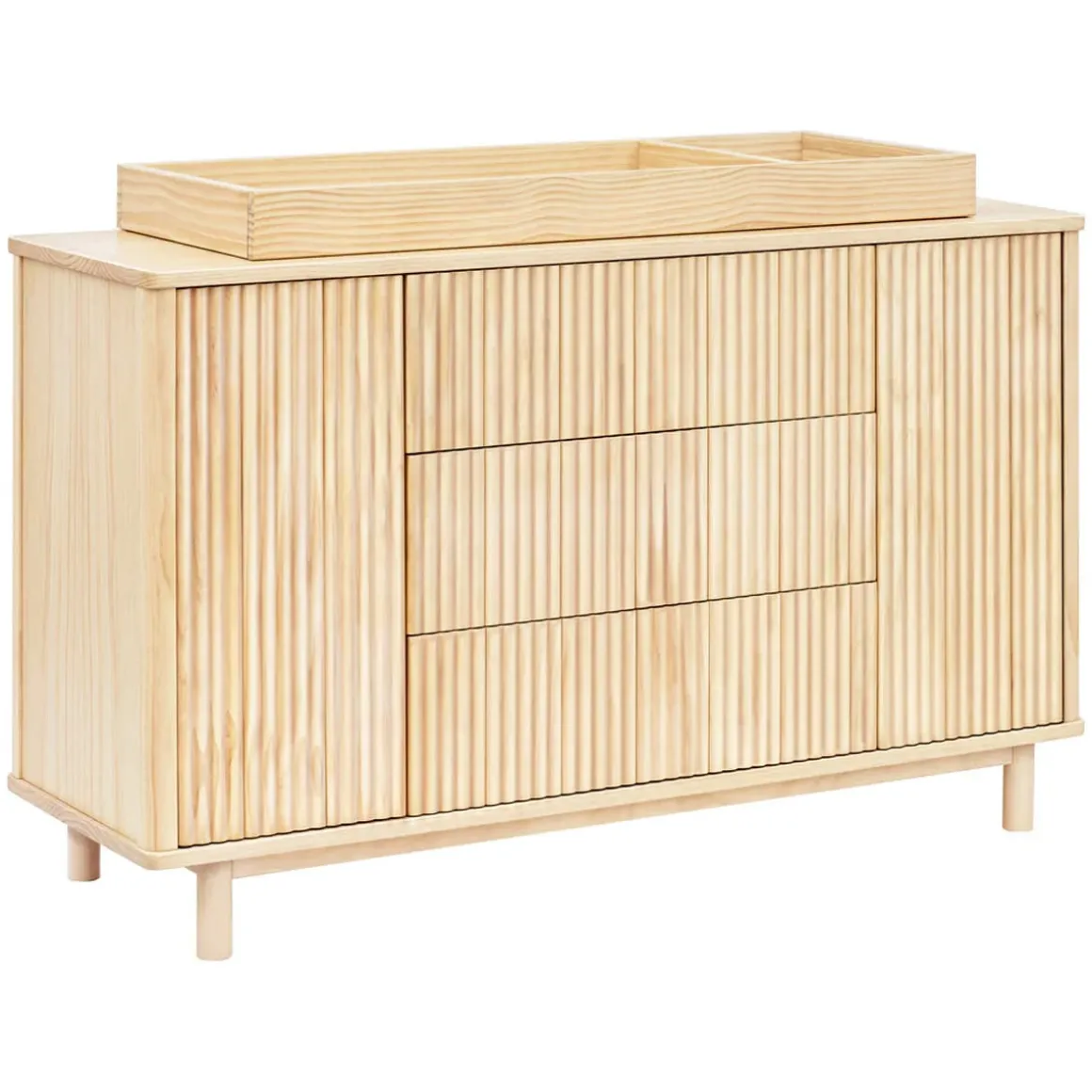 - SOPHISTICATED YET VERSATILE DESIGN: With smooth, rounded corners and elevated fluted tambour paneling, the Pogo dresser was designed to be a statement piece for the modern nursery and beyond. Seamlessly transition from changing table to dresser by incorporating optional removable changing tray for those early years (changing tray #M0619 sold separately).