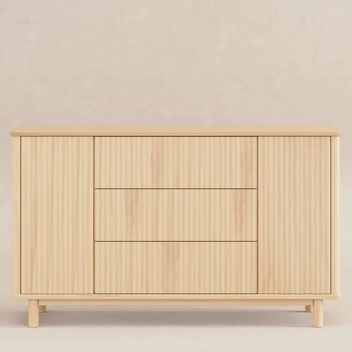 The timeless Pogo Tambour Dresser by Babyletto exudes modern elegance with its textured fluted tambour paneling, smooth, rounded edges, and elevated silhouette. Designed for the nursery but beautiful enough for use throughout the home, it features push to open smooth-gliding drawers, spacious side cabinets, included anti-tip kit for safety, and best-of-all, the Pogo Tambour Dresser by Babyletto arrives fully assembled, ready out of the box.
