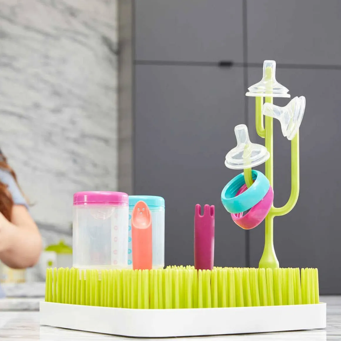 Mountains of bottles and sippy cup parts making you a little prickly? Add POKE to your Boon drying rack and in no time flat they’ll be drier than tumbleweeds in the summertime. The grass blades below allow for drying of additional items. Just watch out for snakes.