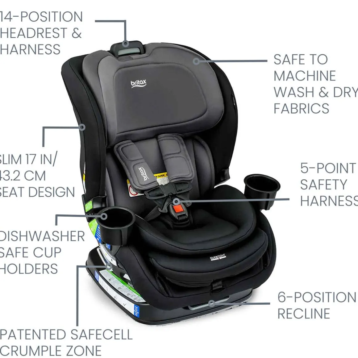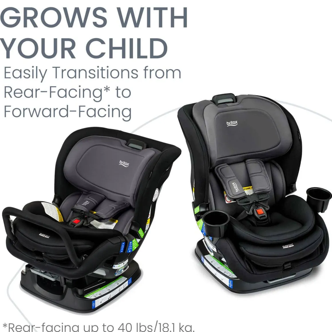 Ready to go with room to grow! The Poplar™ convertible car seat takes the stress out of moving to the next car seat stage thanks to the patented ClickTight® installation and slim SpaceSaver™ design. This car seat accommodates up to 40lbs (18.1 kg) when installed rear-facing and easily switches to a forward-facing car seat as your child grows. The ReboundReduce™ stability bar attaches to the car seat when installed rear-facing to minimize movement in the event of a crash.