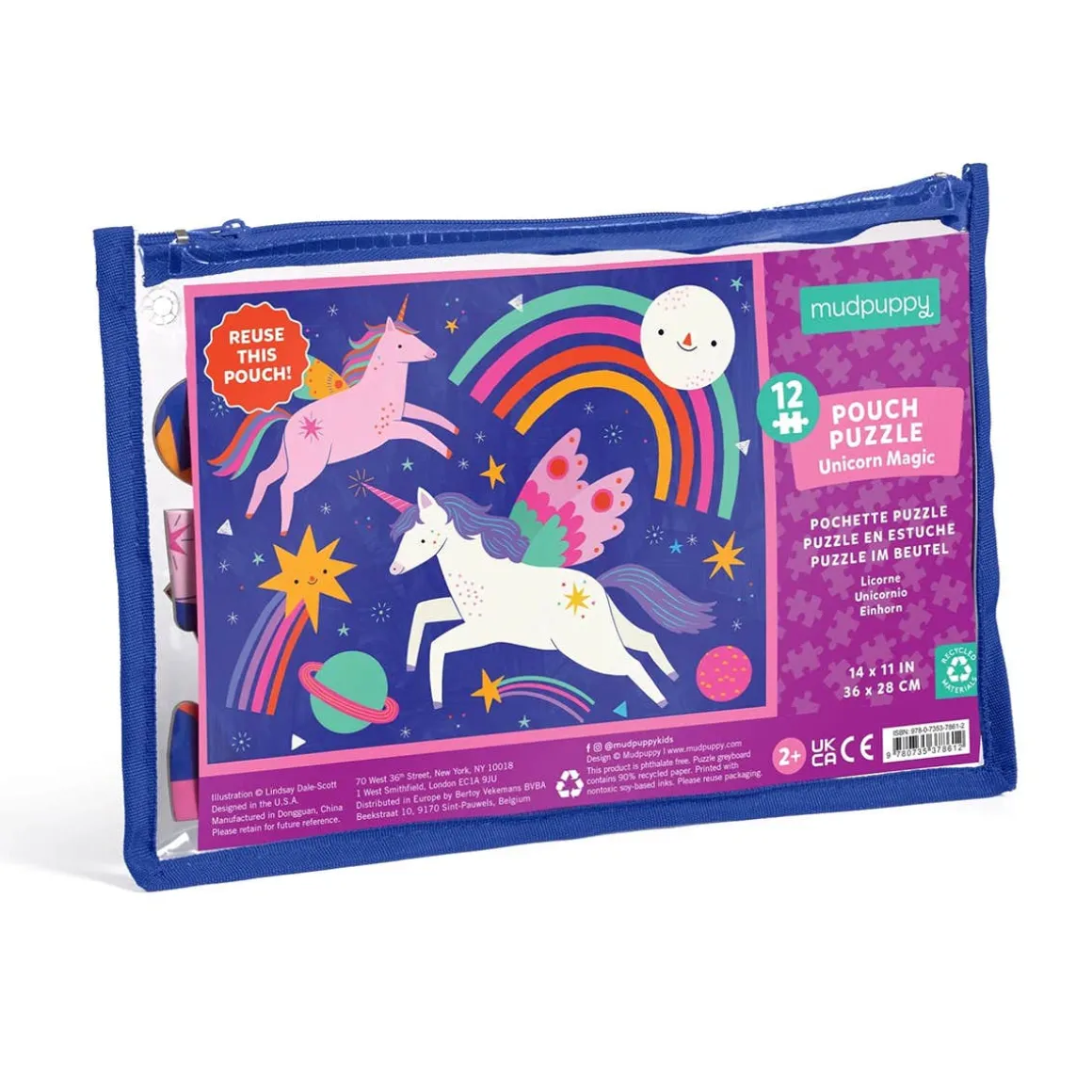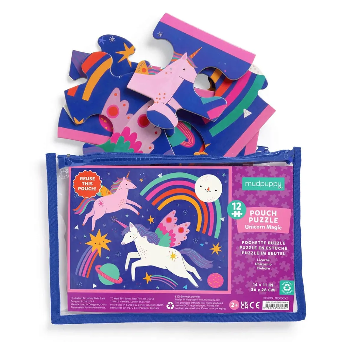 Explore a magical and colorful world with Mudpuppy’s Unicorn Magic 12 Piece Pouch Puzzle! Featuring 12 extra-thick pieces, perfect for small hands, this jigsaw puzzle is packaged in a secure, reusable pouch with ribbon edging and coordinating zipper for easy storage and travel.