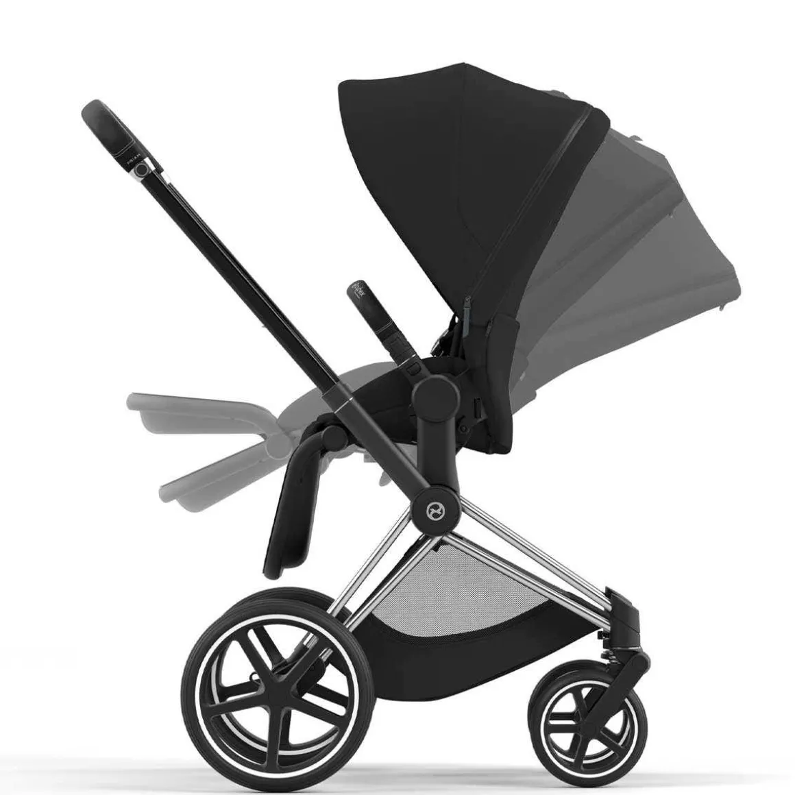 The CYBEX PRIAM 4 stroller combines timeless design elements with new features that make life even easier and meet your highest expectations. The unique one-pull harness helps you secure your child in the stroller in seconds, with just one hand. One frame enables three different modes of use: from birth with the PRIAM 4/e-PRIAM 2 Lux carry cot or any CYBEX infant car seat (both sold separately), and later with the seat unit as a luxurious parent-facing or forward-facing stroller.