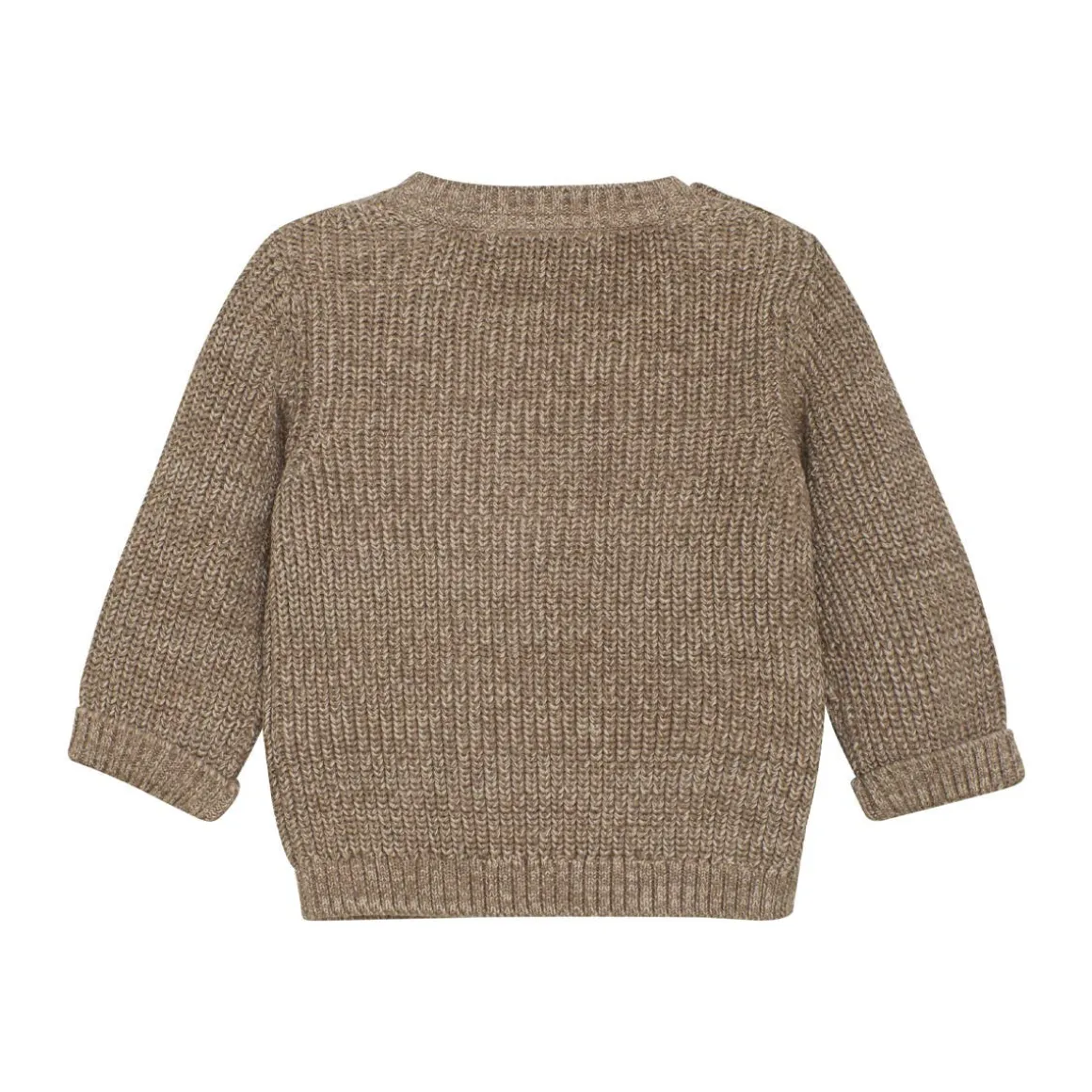 Lovely knitted sweater from EN FANT in a thick and soft cotton quality. The sweater features long sleeves, soft rib edges, buttons on both shoulders, and knitted text across the chest. Certified acc. to GOTS – organic CERES-0366