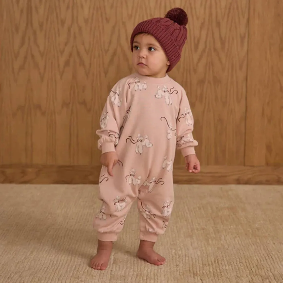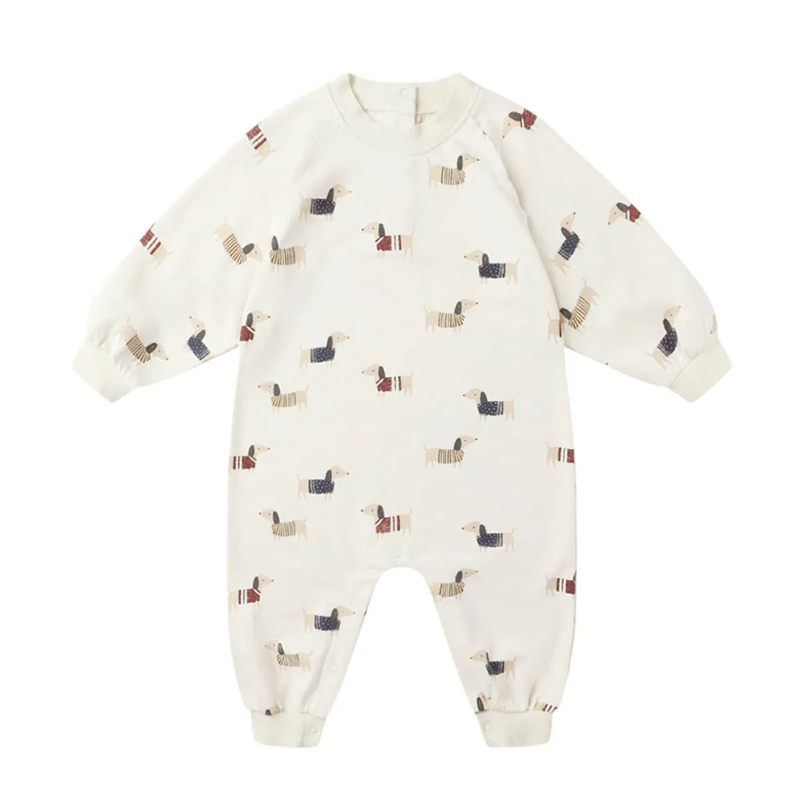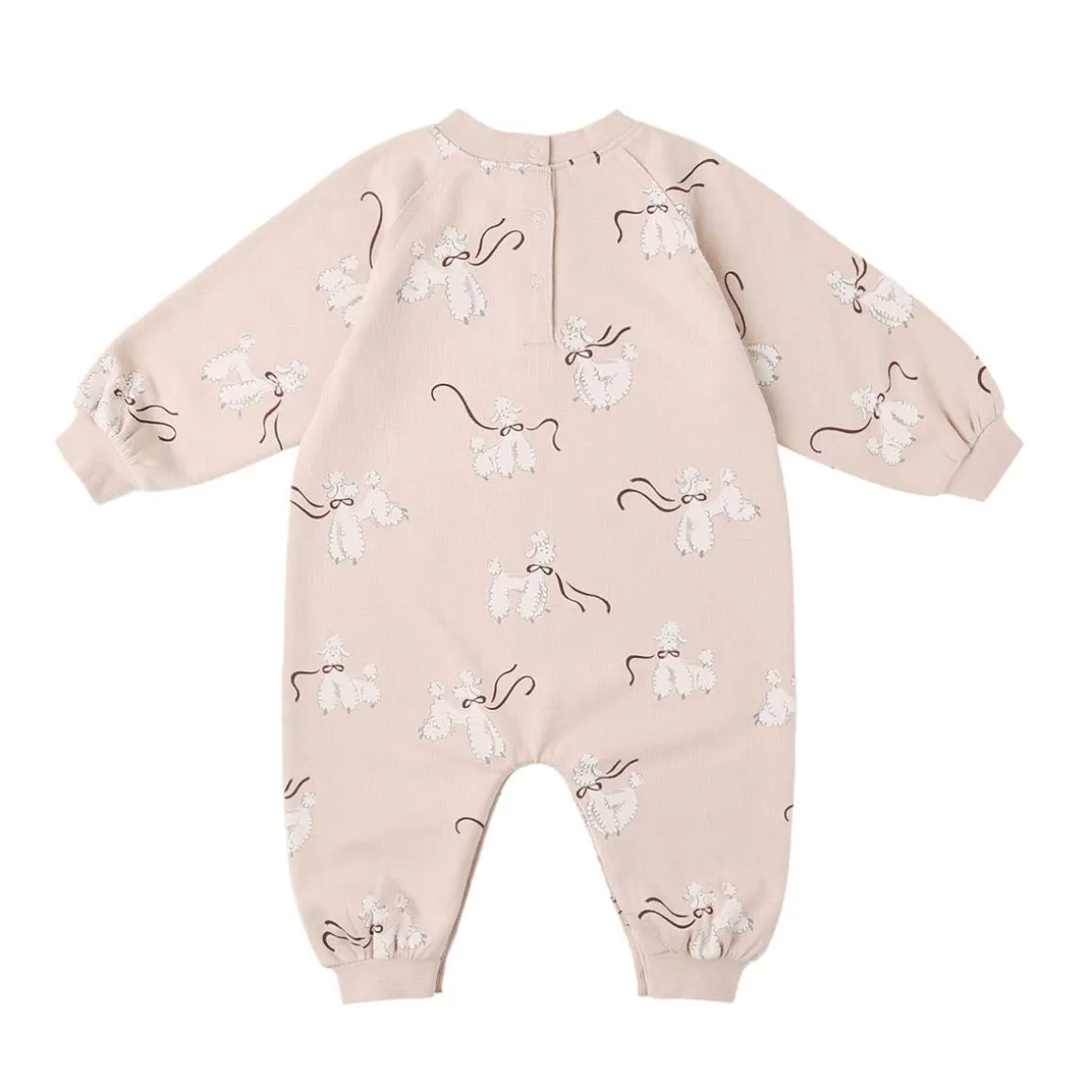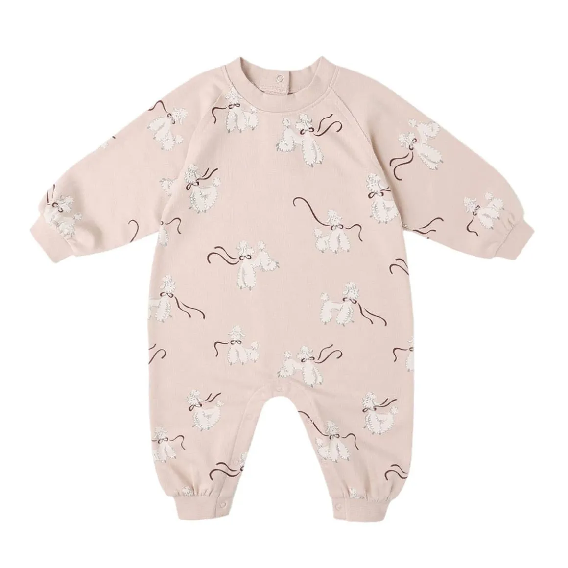 Crafted from soft French terry, this long sleeve bubble romper is as cozy as it is cute, featuring elastic leg openings and bottom snaps for a snug fit and easy changes.