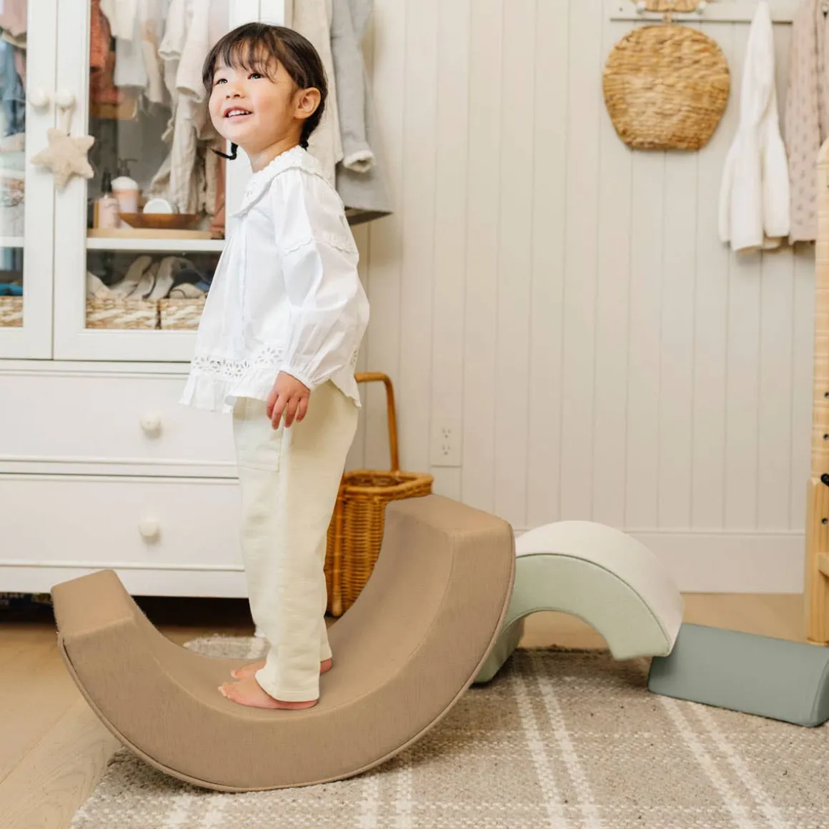 Rock, Climb, Slide, Repeat. Finally a play piece that’s as pretty for your home as it is fun for kids. Climb up it like stairs, slide down it, turn it over for rocking – this will keep them entertained for years as their favorite new playroom addition.