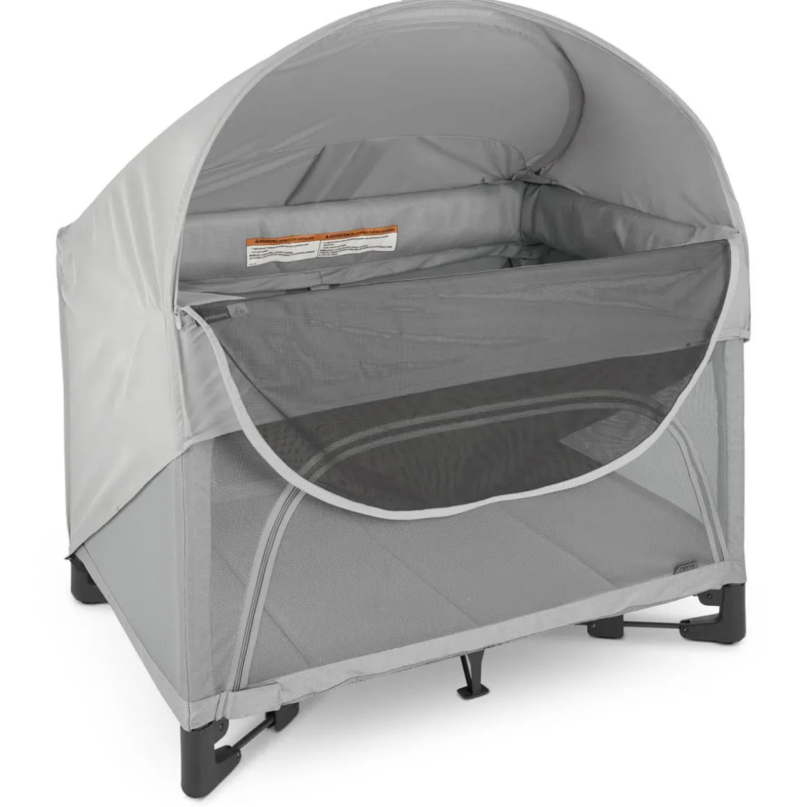 Canopy easily attaches to you REMI playard for UPF 50+ and bug protection while outdoors or room darkening indoors. Folds compactly for easy transporting.