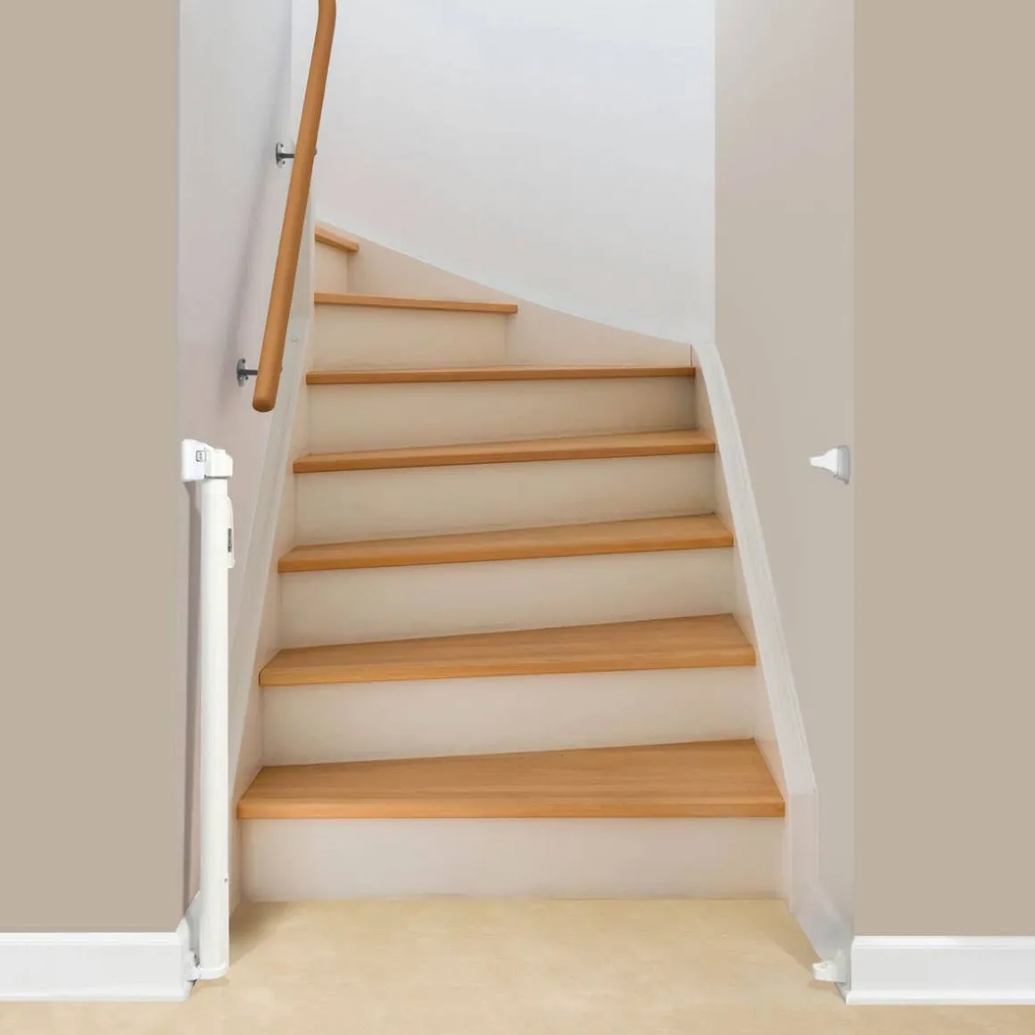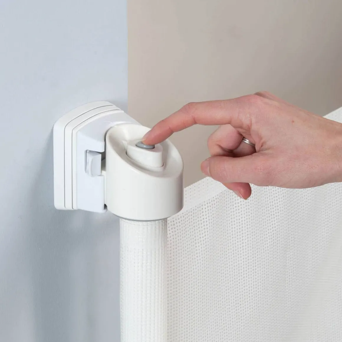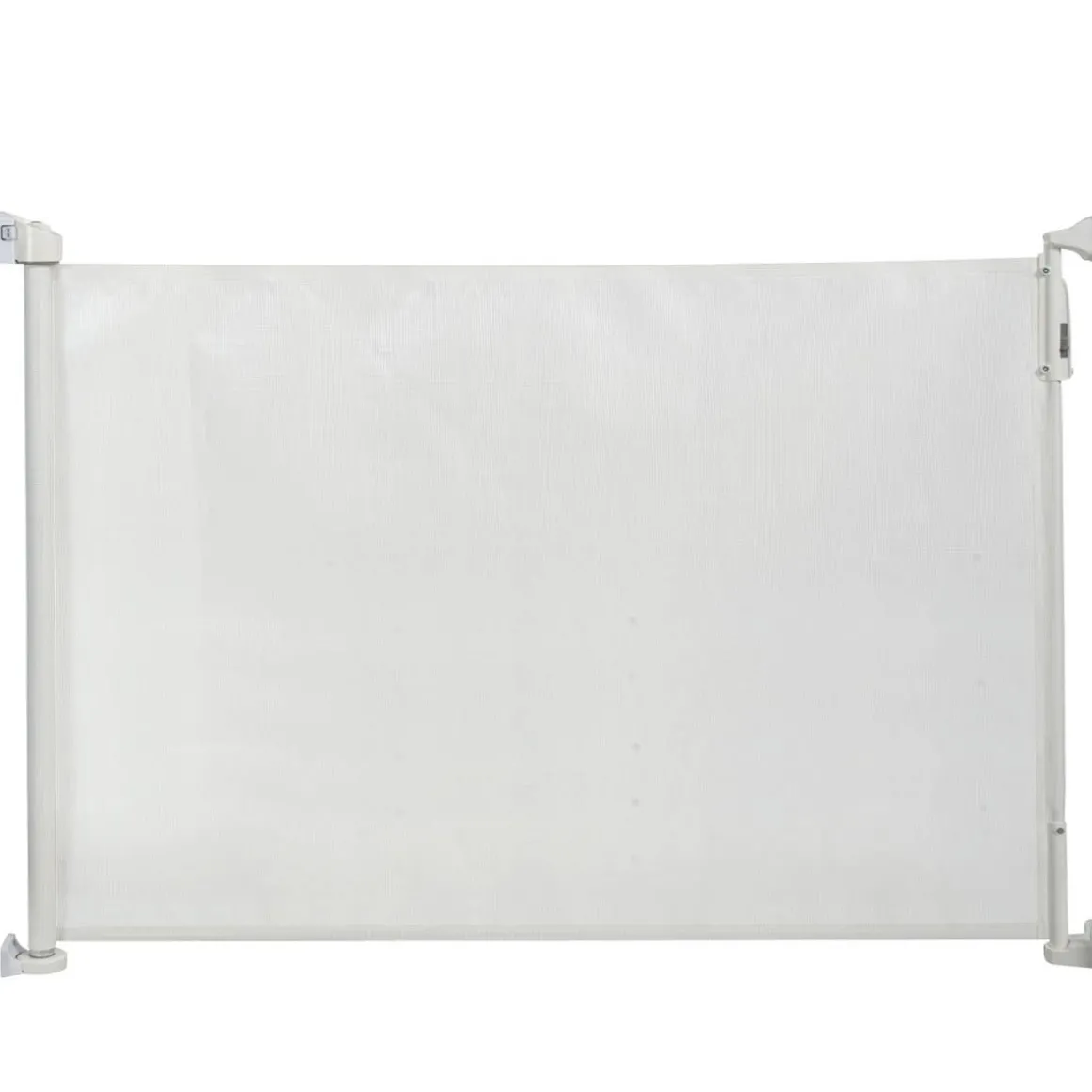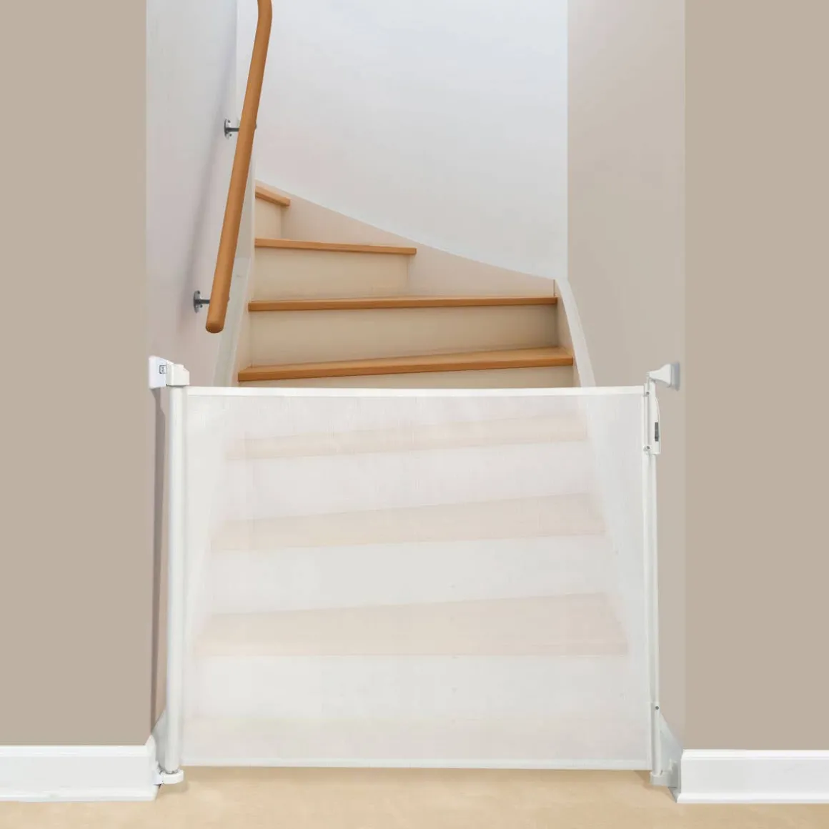 The KidCo Retractable Safeway is a flexible, yet safe mesh barrier with patented one-touch memory button to pre-set the gate width for easy and safe walk through. The super quiet recoil won’t wake your baby and the INCLUDED spacers make baseboard installation a breeze. Extends for all openings up to 55″ and features quick release hardware to stow away when not in use. Height: 33.5″.