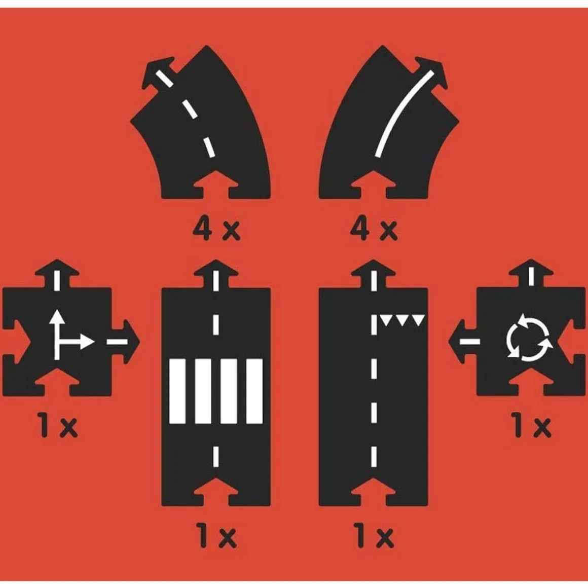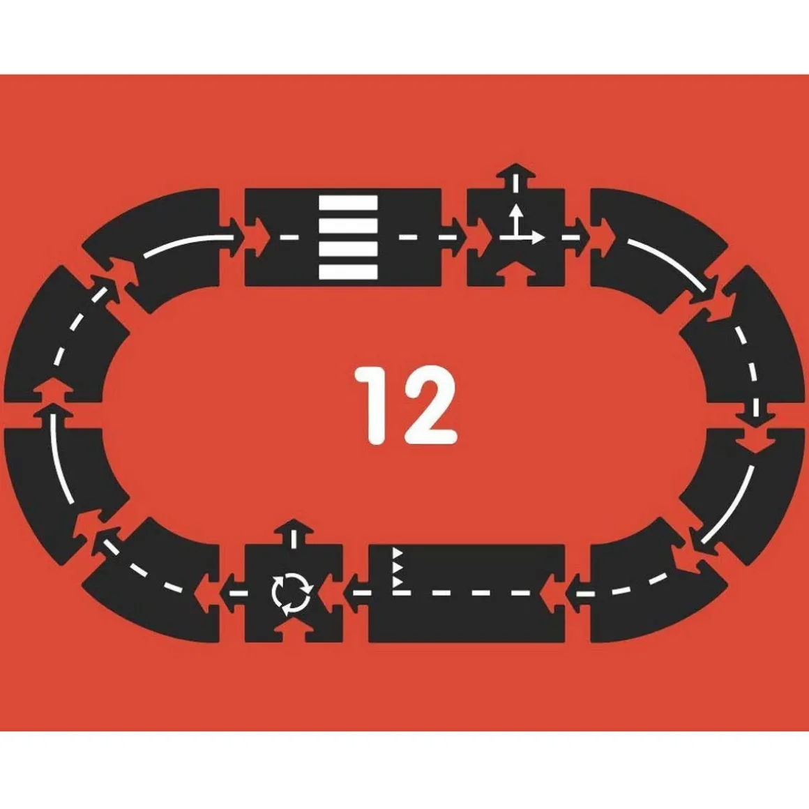 - 8 curves, 2 straights, 1 intersection and 1 roundabout