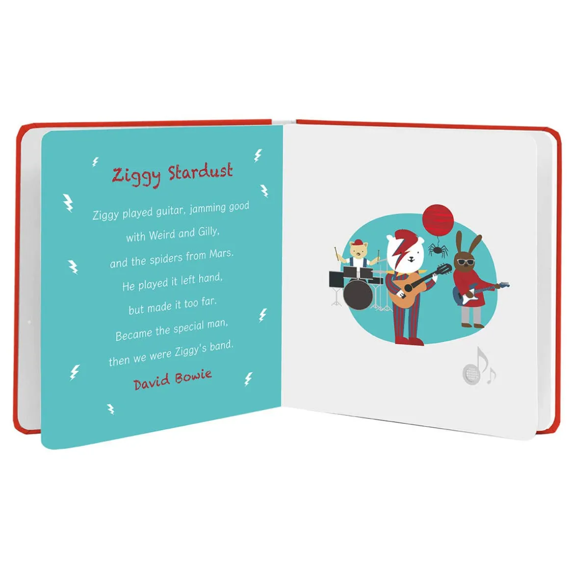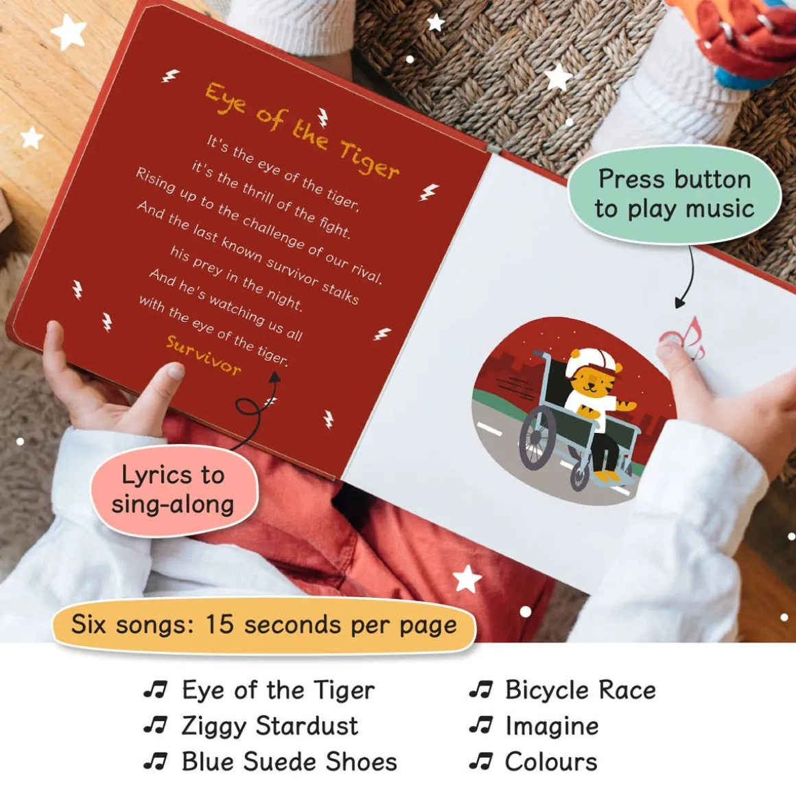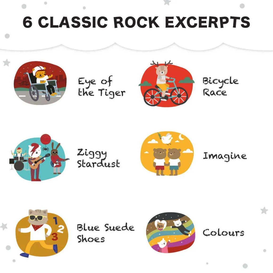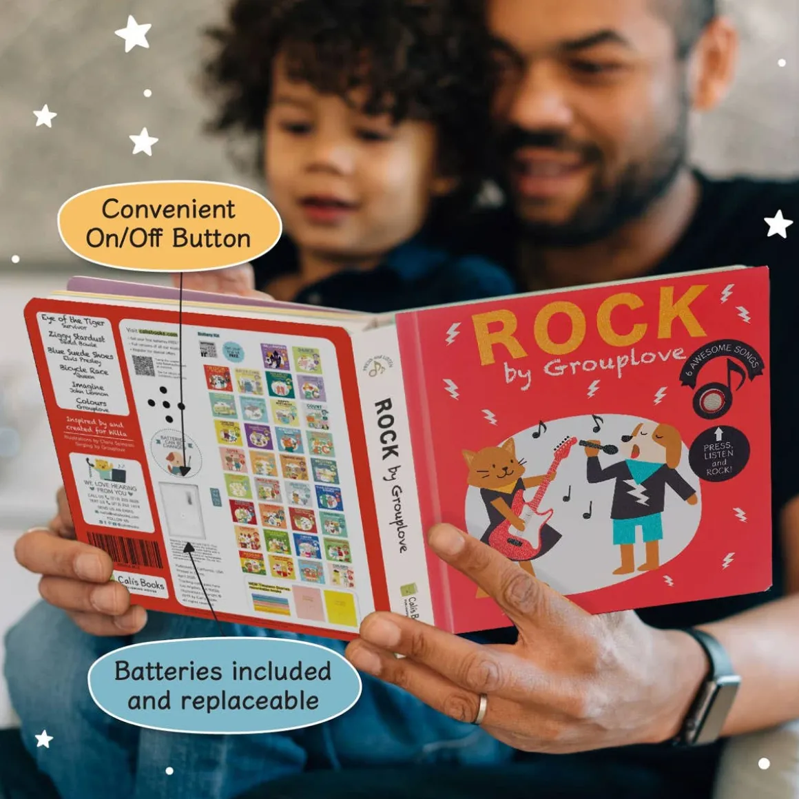 A very special edition for all our rock fans! Our Rock by Grouplove book comes with 6 favorite classic rock songs from Queen, John Lennon, Elvis Presley, David Bowie and Survivor. All these songs are magnificently performed by Grouplove, an American alternative rock band, with an included snippet of their musical hit, Colours.