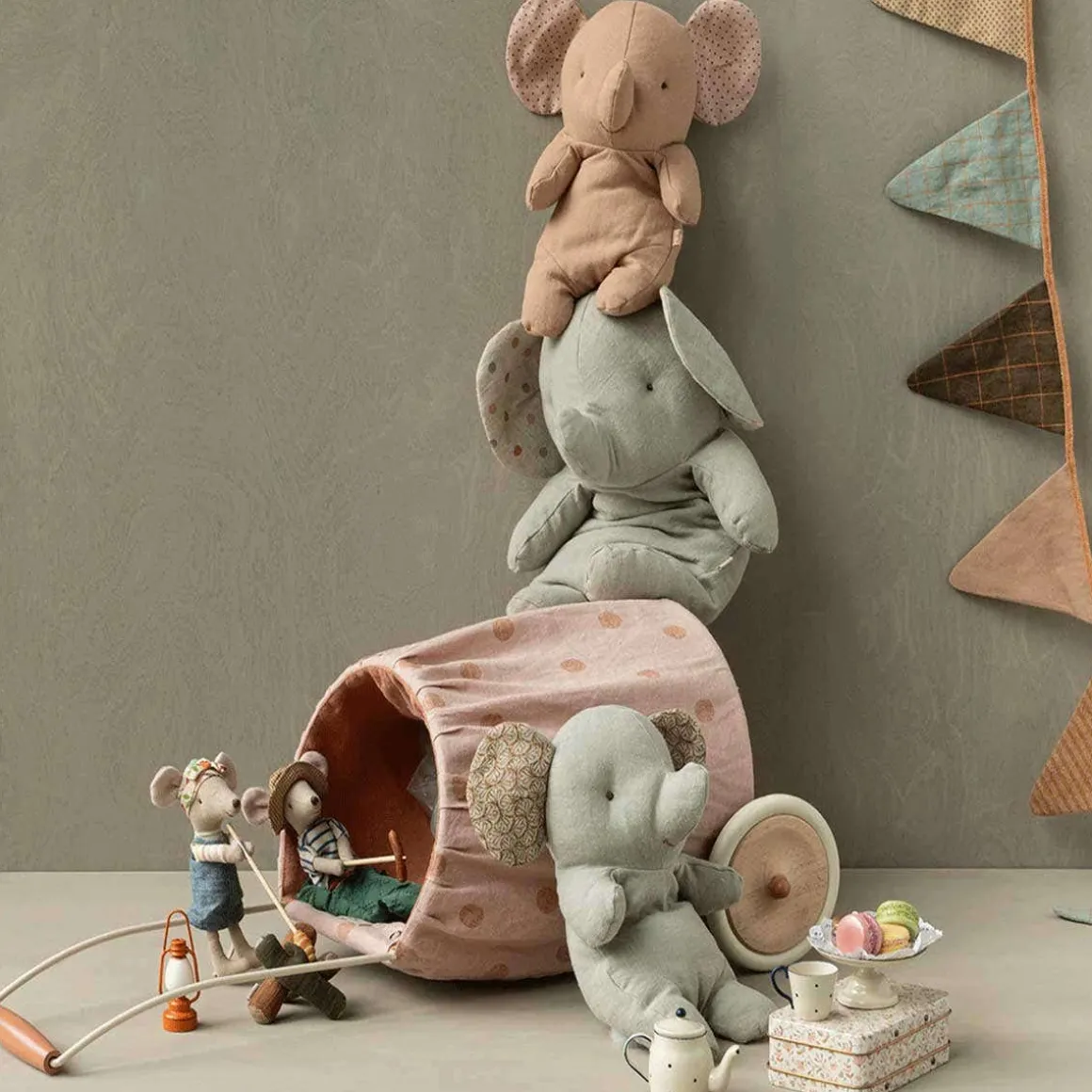 Safari friends are made of the softest fabric and comes in great colors. They can sit by themselves and are just waiting for you to come and give them a hug. Meet the sweet grey and powder pink elephant!