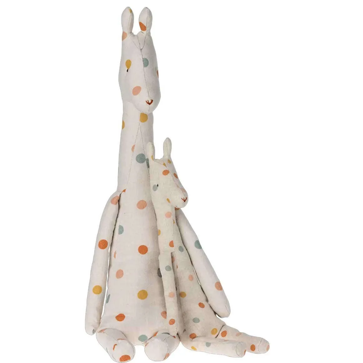 This giraffe comes in soft linen fabric with a multi-dot print. It has a sweet look and size – a new best friend for the small ones.