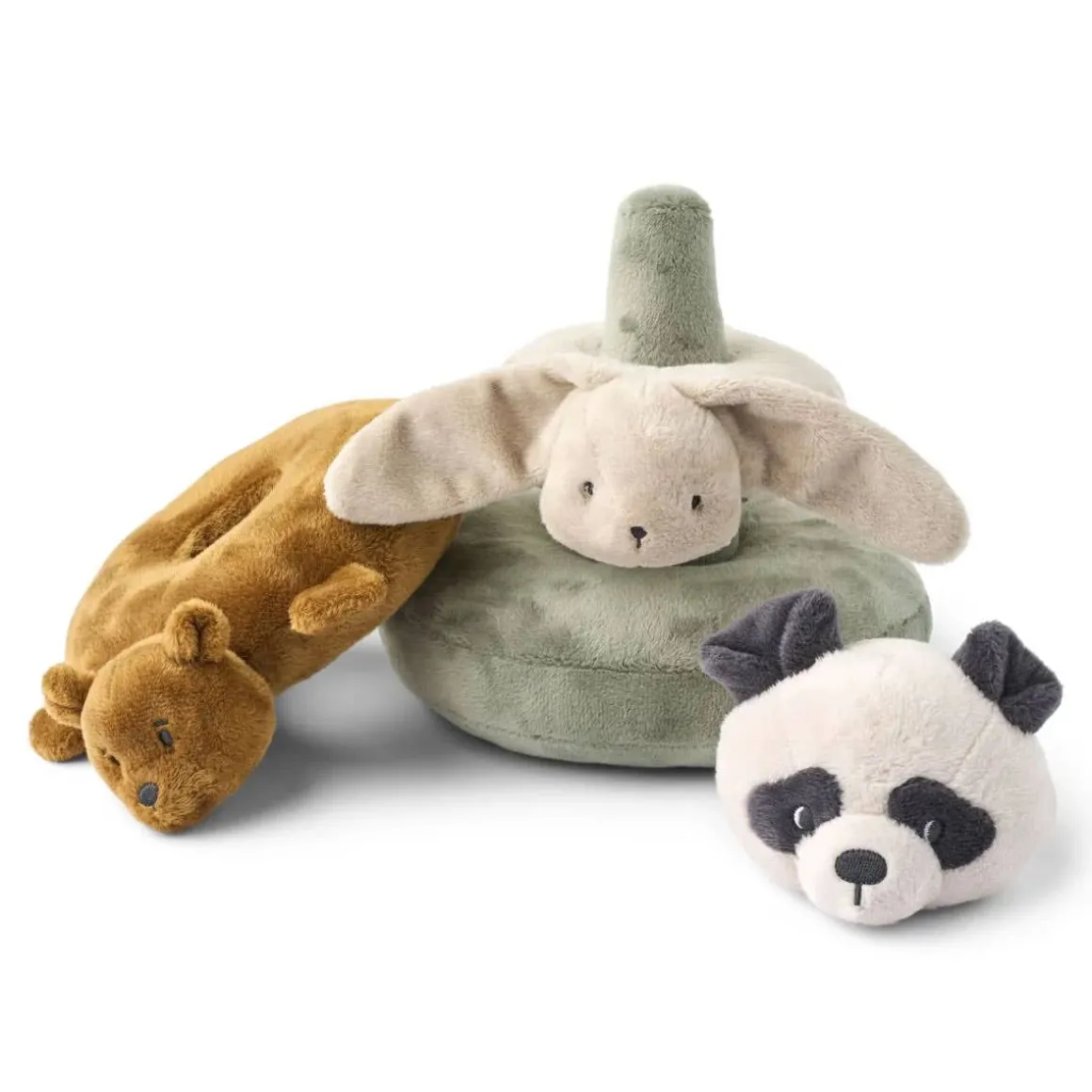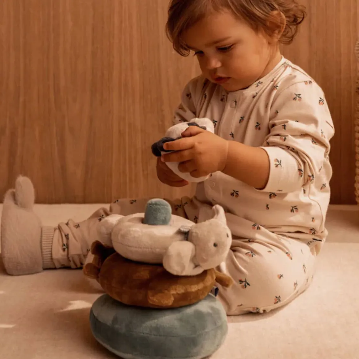 - Soft plush stacking tower set in playful animal shapes• Made from 100% GRS-certified recycled polyester