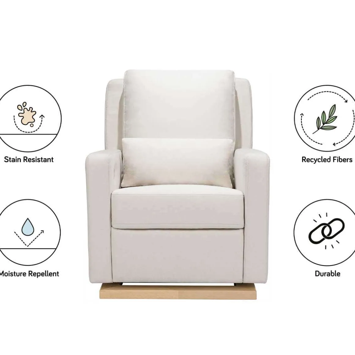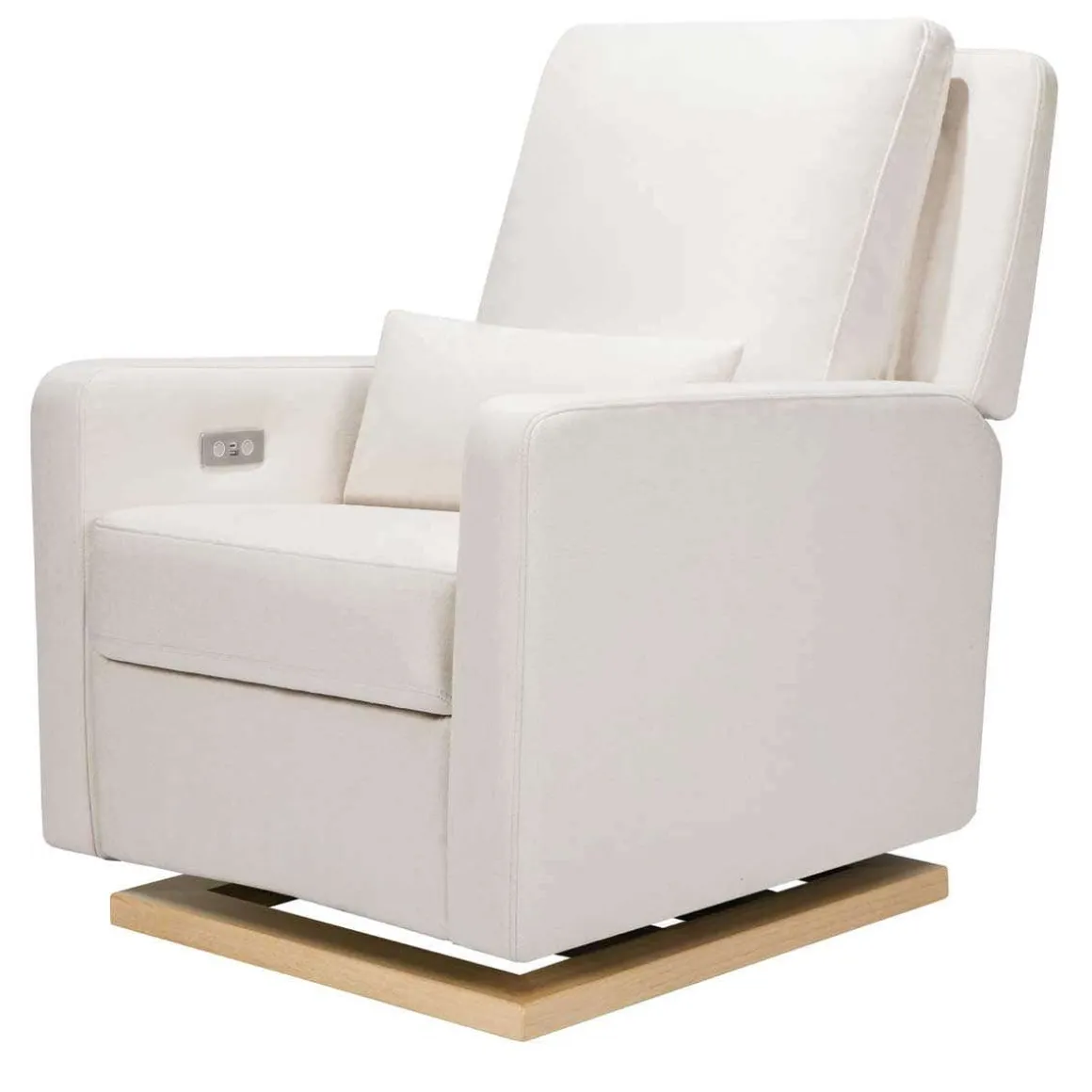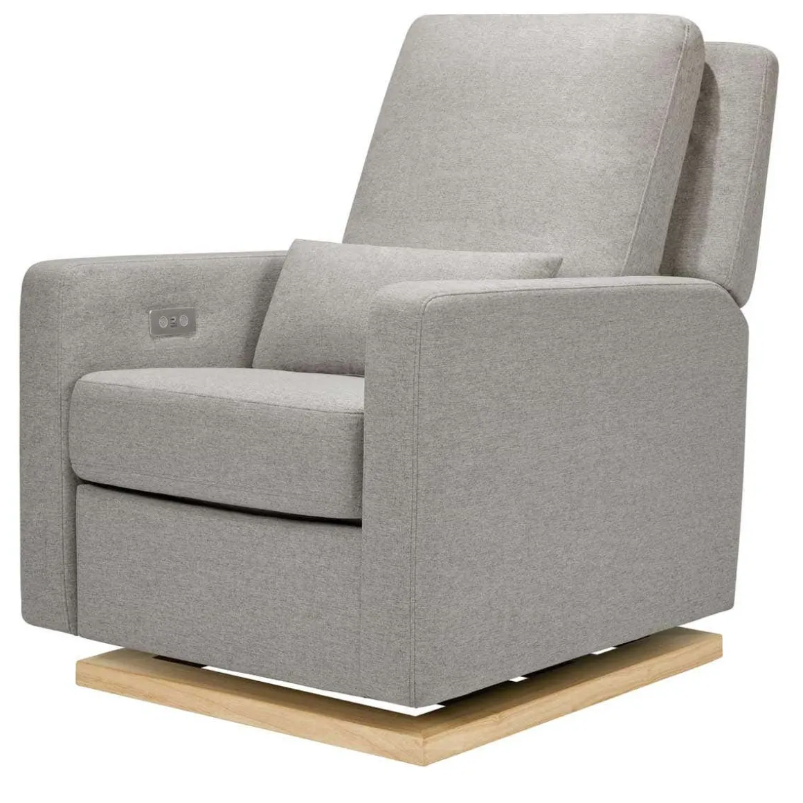 The Sigi Glider Recliner is a stylish choice with its crisp, modern design and comfortable seat on a light wood base. Effortlessly glide back and forth in an upright position to rock your baby to sleep, or lean back and relax at the touch of a button with this recliner’s quiet electronic control button. Upholstered by hand in eco-performance fabric that is stain resistant, water repellent, and made with at least 30% recycled fiber, it is a more sustainable choice for your baby and home.